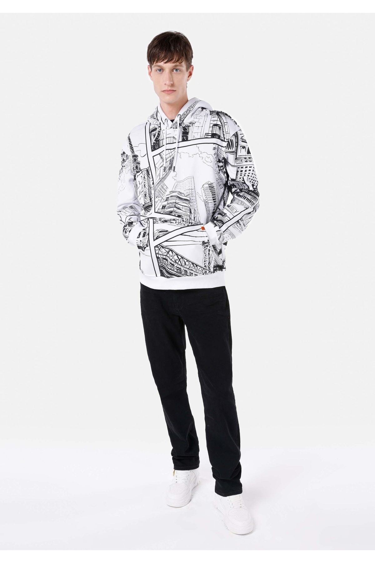 Comfort Fit Erkek Desenli Beyaz Sweatshirt Comfort Fit Erkek Desenli Beyaz Sweatshirt .CL1066730_Q1.V1_OFW XL