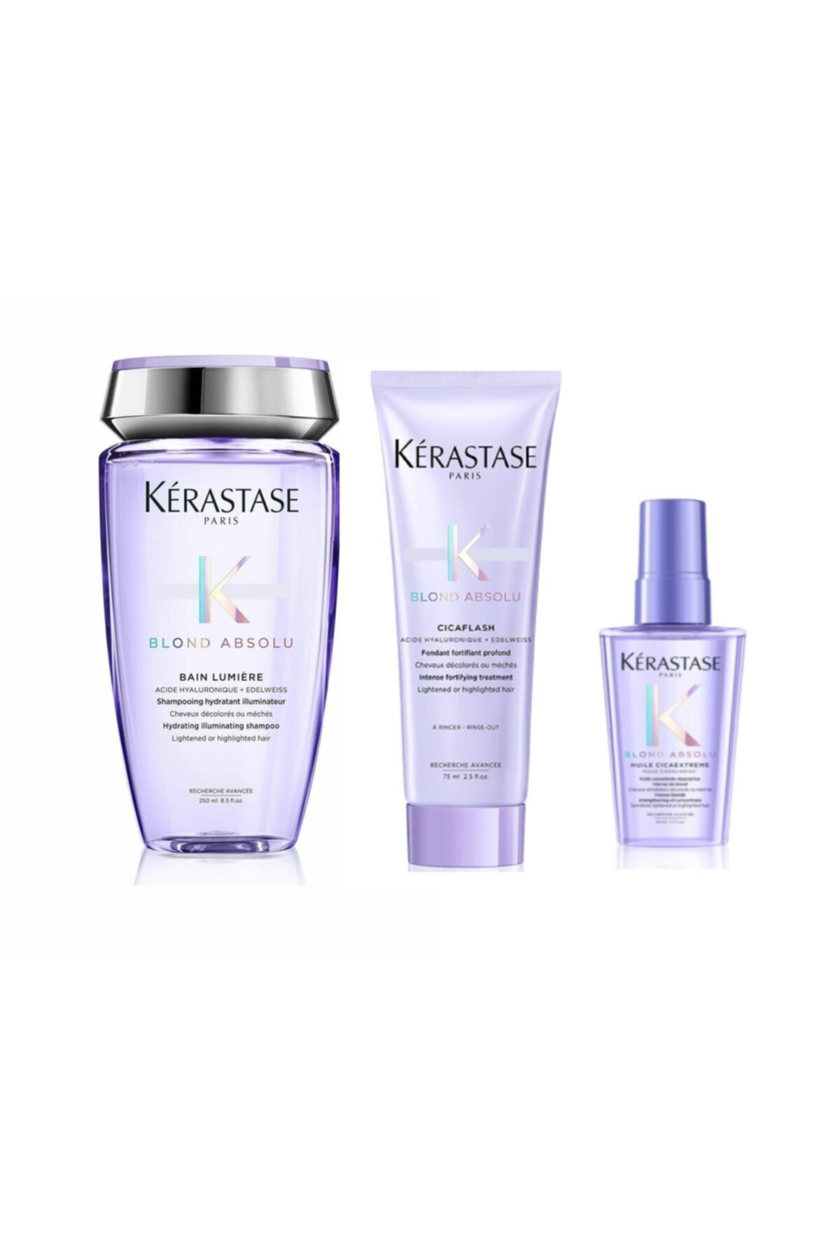 Kérastase Blond Absolu Bain Ultra -Violet Sampuan 250 ml Cicaflash 250 ml Maske 200 ml Kérastase Blond Absolu Bain Ultra -Violet Sampuan 250 ml Cicaflash 250 ml Maske 200 ml BUNDLE1199 تک سایز