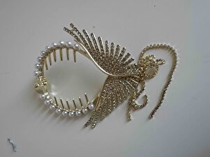 Altın Rengi Taşlı İncili Kanat Topuz Tokası Altın Rengi Taşlı İncili Kanat Topuz Tokası TX54394A2B16771 تک سایز