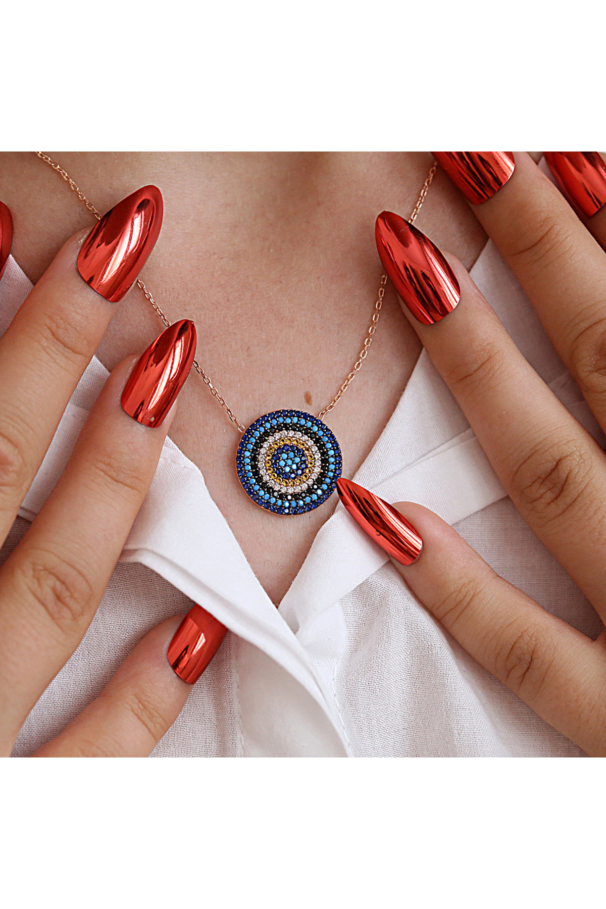 Safir Taşlı Yuvarlak Nazar Boncuğu Gümüş Kolye Safir Taşlı Yuvarlak Nazar Boncuğu Gümüş Kolye KLY.LAS.RO00171 45 cm