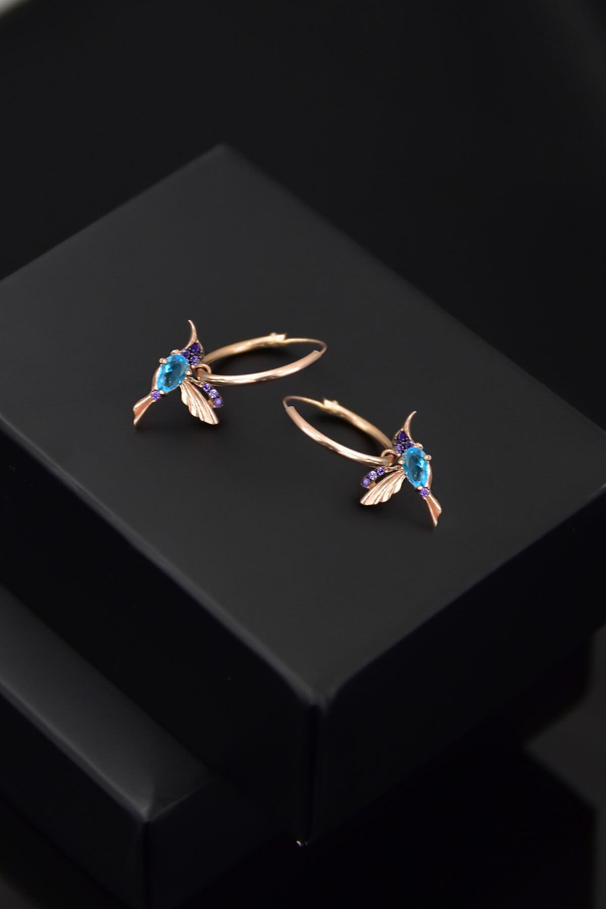 925 Ayar Gümüş Rose Kaplama Mavi Mor Taşlı Sallantılı Kuş Küpe 925 Ayar Gümüş Rose Kaplama Mavi Mor Taşlı Sallantılı Kuş Küpe SUVPS300758 تک سایز
