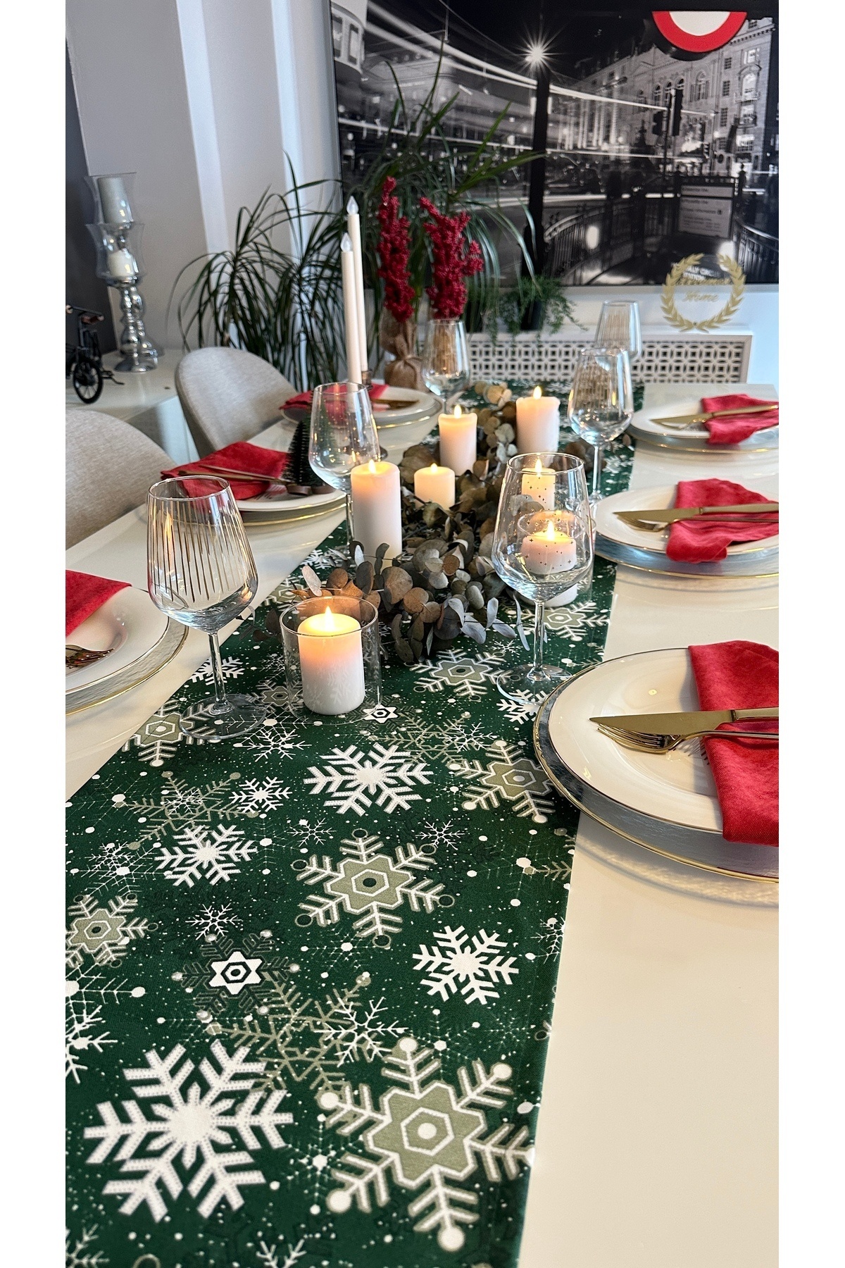 Yeni Yıl Temalı Kar Tanesi Desenli Yeşil Uzun Runner Yılbaşı Runner (PEÇETE DAHİL DEĞİL) Yeni Yıl Temalı Kar Tanesi Desenli Yeşil Uzun Runner Yılbaşı Runner (PEÇETE DAHİL DEĞİL) TYC46WTGTN169952920084015 50 x 260