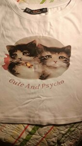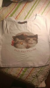 Cute Kitten Ribbed Baskılı Beyaz Crop Cute Kitten Ribbed Baskılı Beyaz Crop TZ6799 L/XL