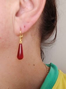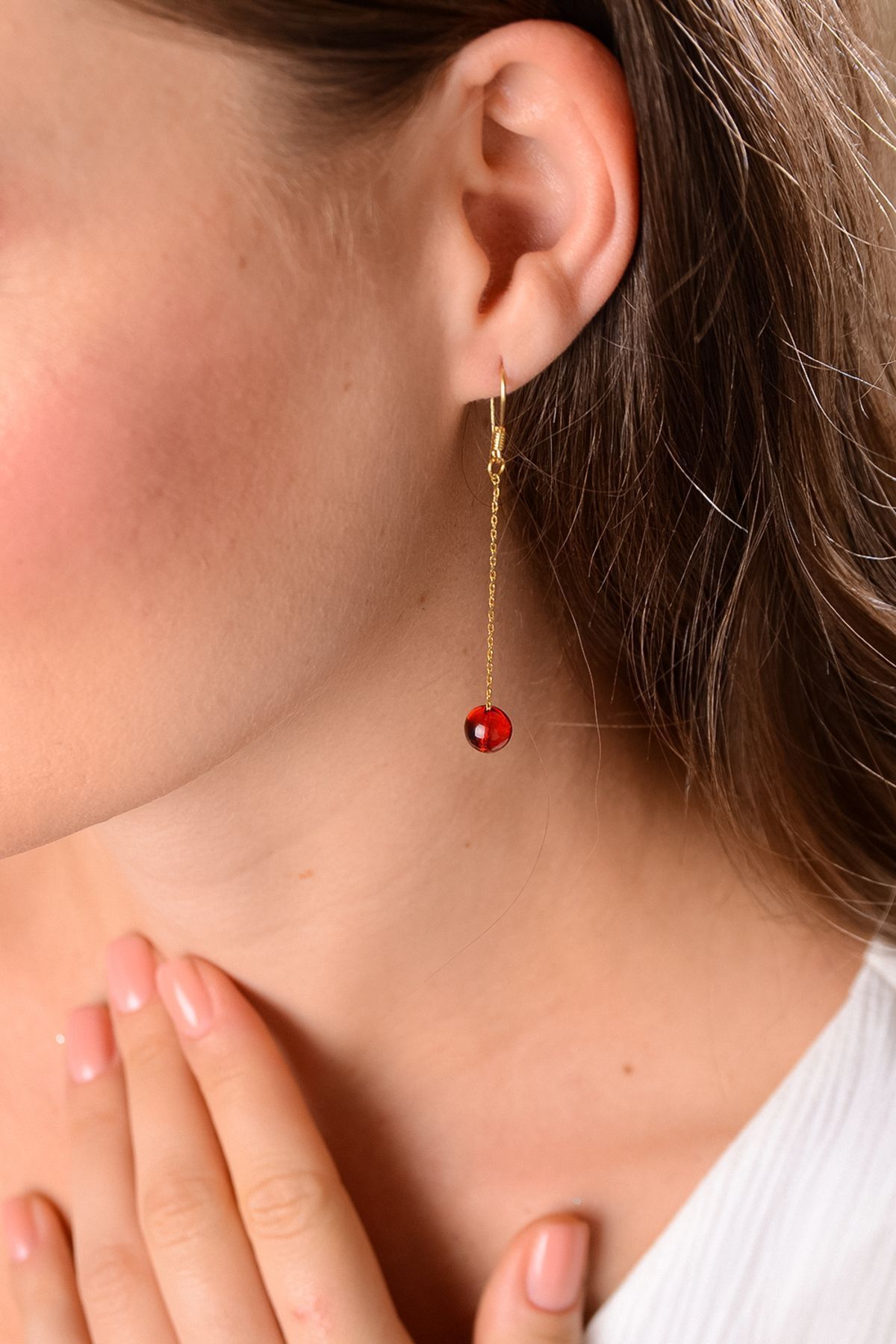 Altın Kaplama 925 Ayar Gümüş Kırmızı Kehribar Küpe Altın Kaplama 925 Ayar Gümüş Kırmızı Kehribar Küpe 1A-5K9-A7 تک سایز