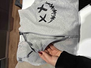 X X Yüz Fermuarlı Hırka Sweatshirt - Gri Baskılı Oversize Kışlık Kalın Kapüşonlu X X Yüz Fermuarlı Hırka Sweatshirt - Gri Baskılı Oversize Kışlık Kalın Kapüşonlu XXYZHRK-SL XL