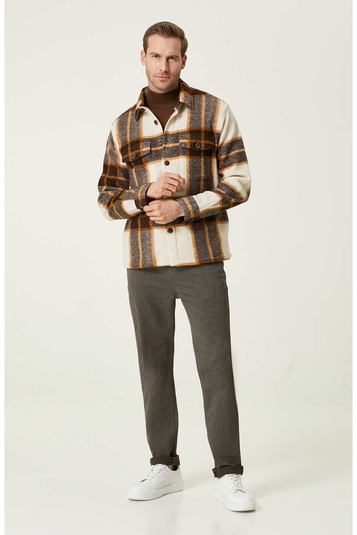 Ekru Kahverengi Ekose Desenli Dış Gömlek Ekru Kahverengi Ekose Desenli Dış Gömlek 1089550 2XL