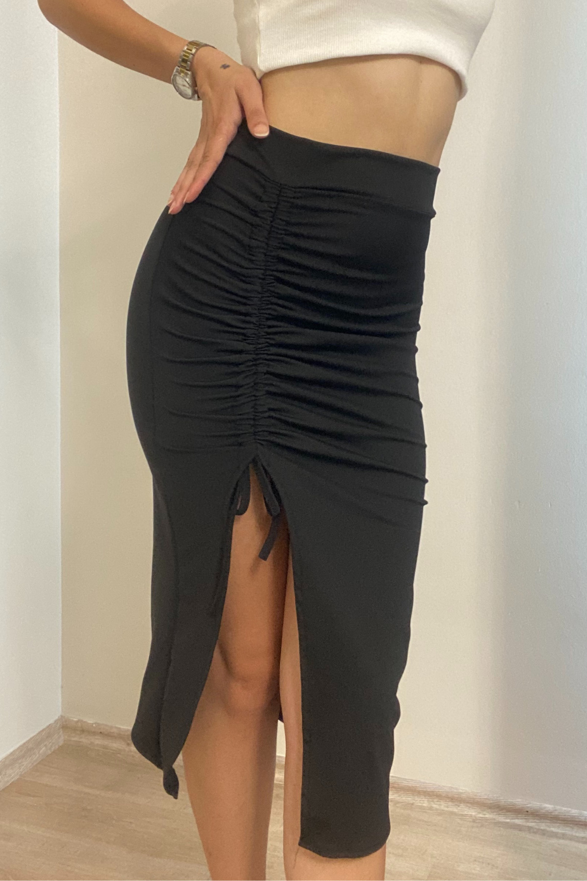Yırtmaçlı Siyah Midi Etek Yırtmaçlı Siyah Midi Etek Yırtmaçlı Midi Siyah Etek M