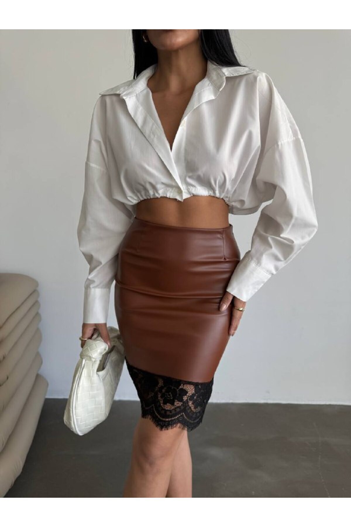 Deri Görünümlü Fermuar Detaylı Mini Etek Deri Görünümlü Fermuar Detaylı Mini Etek SO011709166 38