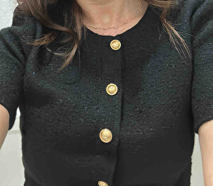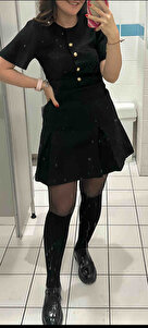 Mini Tüvit Pileli Elbise Altın Düğme Detaylı Pileli Kısa Kollu Yuvarlak Yaka Mini Tüvit Pileli Elbise Altın Düğme Detaylı Pileli Kısa Kollu Yuvarlak Yaka 4SAL80085IW 42