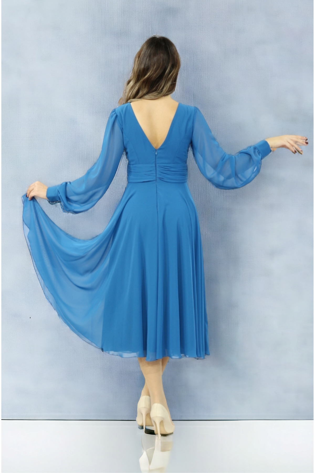 Uzun Kollu Kruvaze Yaka Midi Şifon Elbise Uzun Kollu Kruvaze Yaka Midi Şifon Elbise 528101 48