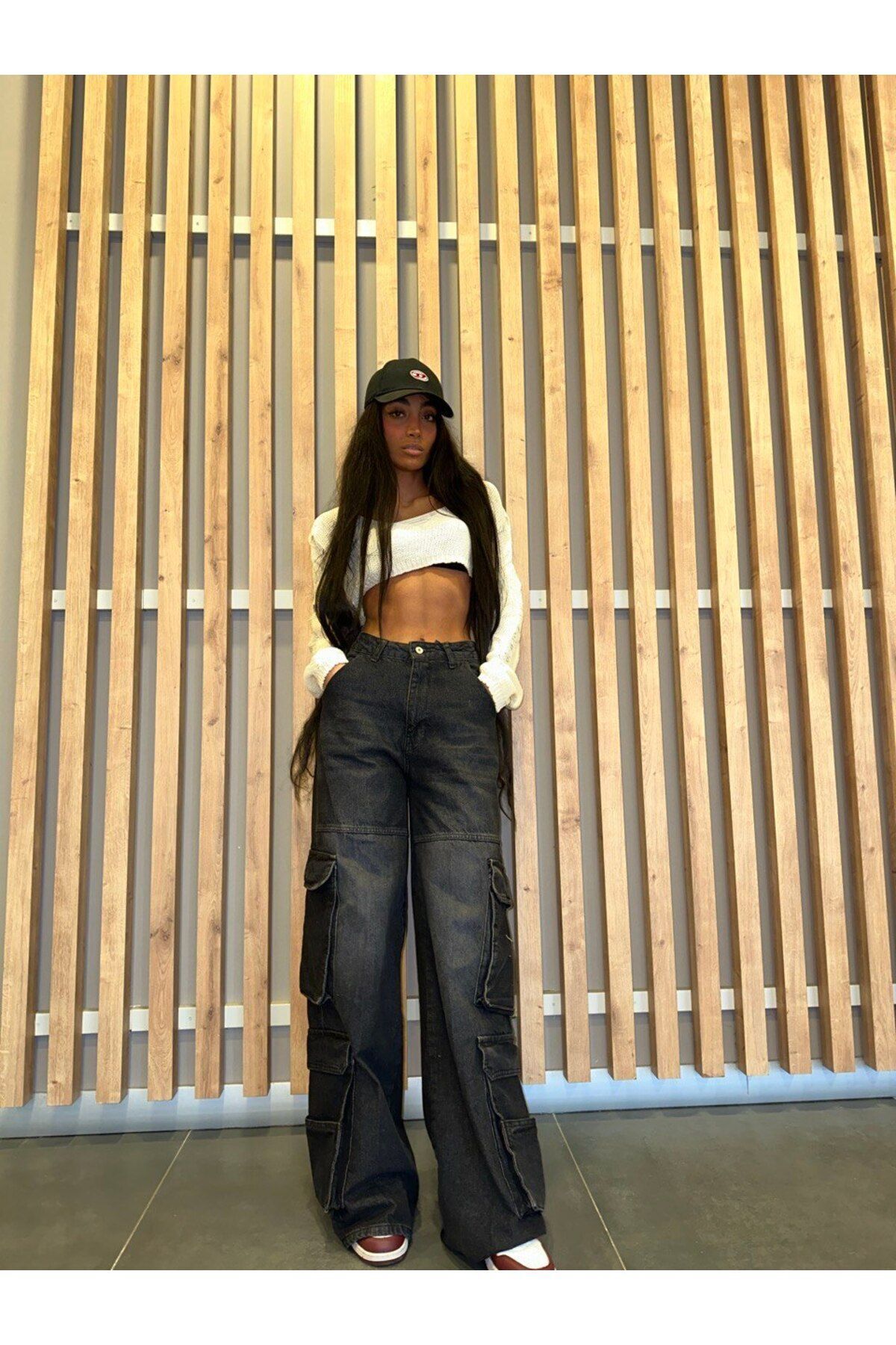 Siyah Geniş Kesim Yıkamalı Jean Pantolon Siyah Geniş Kesim Yıkamalı Jean Pantolon AL16039S 42