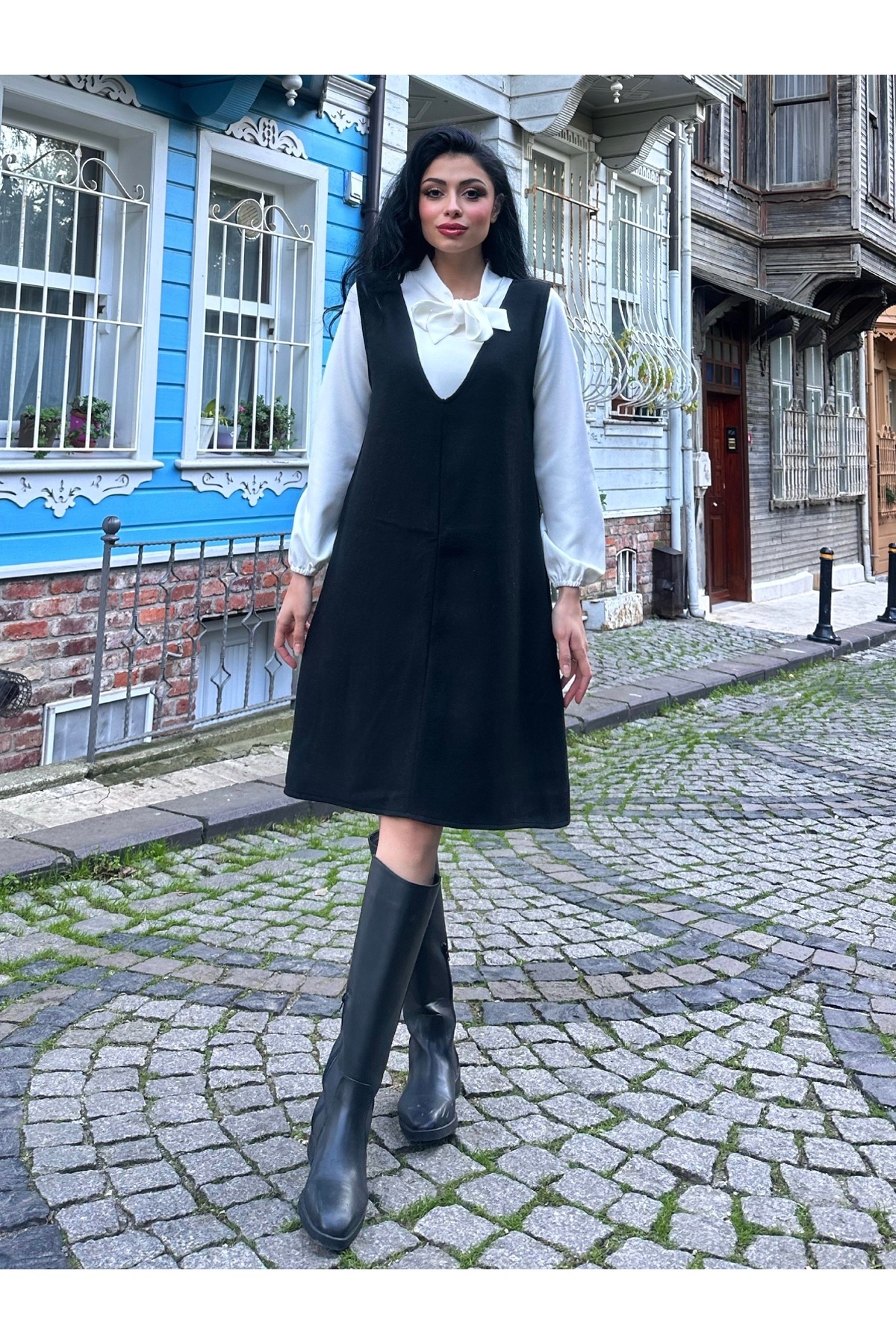 Bordo Kısa Kaşe V Yaka Jile Elbise Bordo Kısa Kaşe V Yaka Jile Elbise KCGM11867 48-50