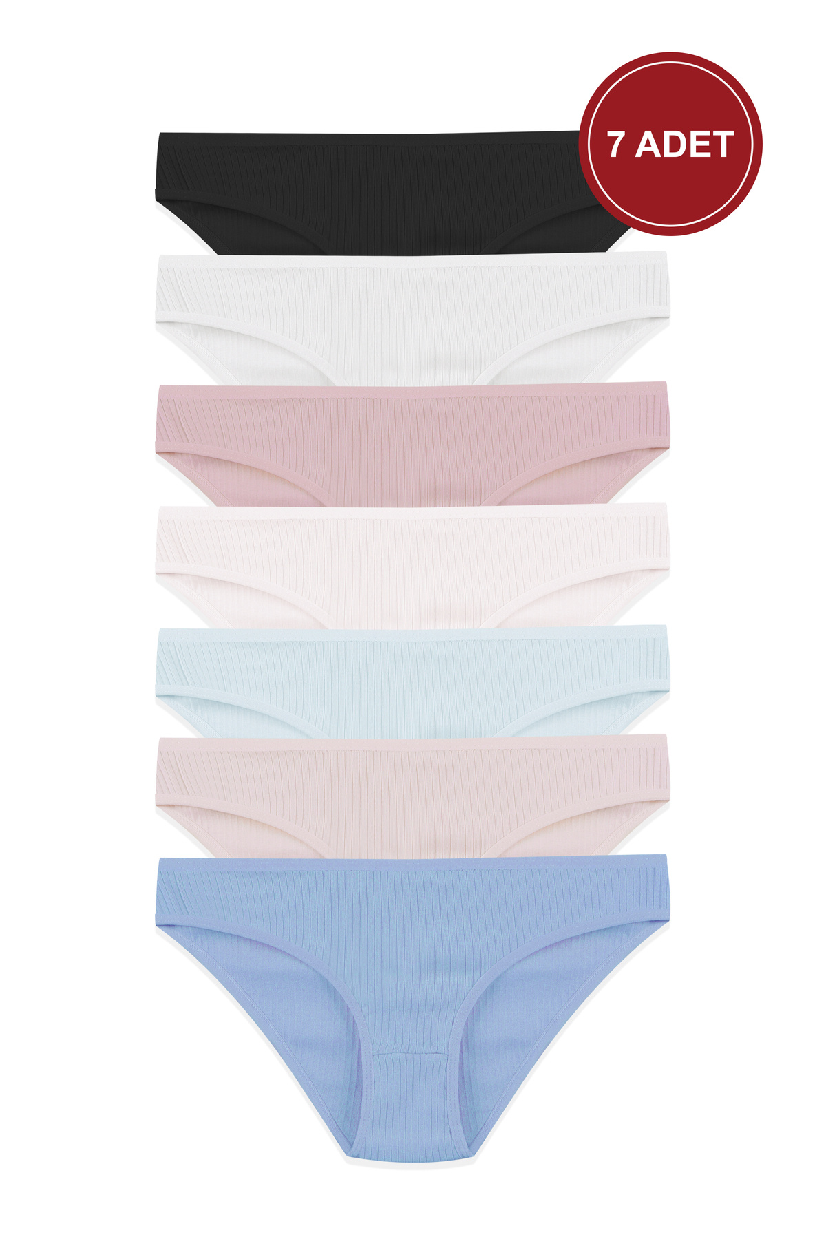 Kadın 7'li Fitilli Pamuklu Ribanalı Külot Kadın 7'li Fitilli Pamuklu Ribanalı Külot K11086 L/XL