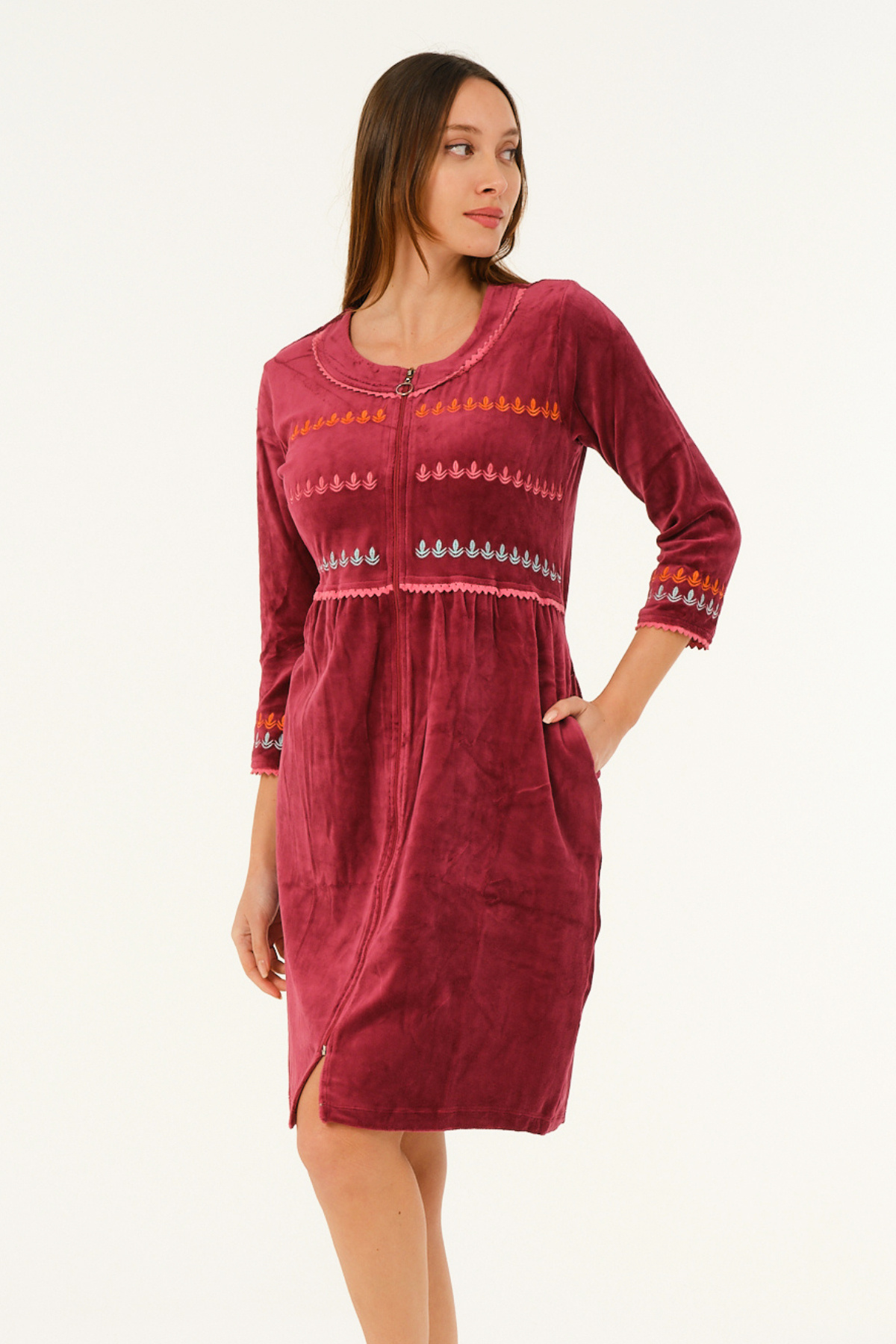 kadın fermuarlı dantel detaylı cepli 3/4 kol pamuklu kadife elbise kadın fermuarlı dantel detaylı cepli 3/4 kol pamuklu kadife elbise 20037 2XL