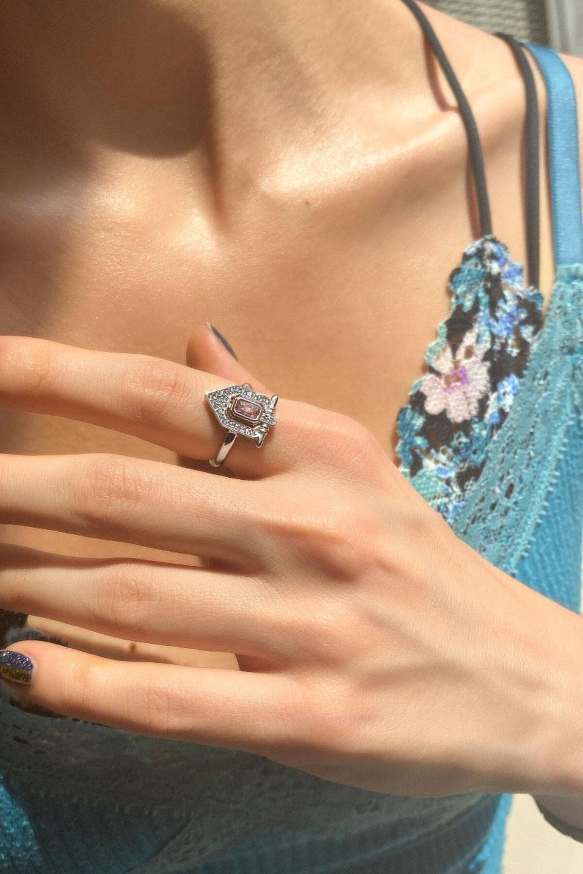 Baget Kesim Pembe Kuvars Taş Gümüş Yüzük Baget Kesim Pembe Kuvars Taş Gümüş Yüzük ZRYZK0000116604 22