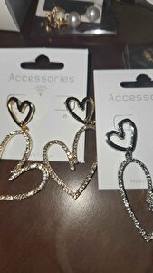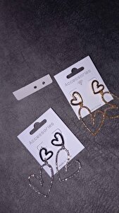 Zirkon Taşlı Sallantılı Kalp Küpe Zirkon Taşlı Sallantılı Kalp Küpe MRK-POT تک سایز