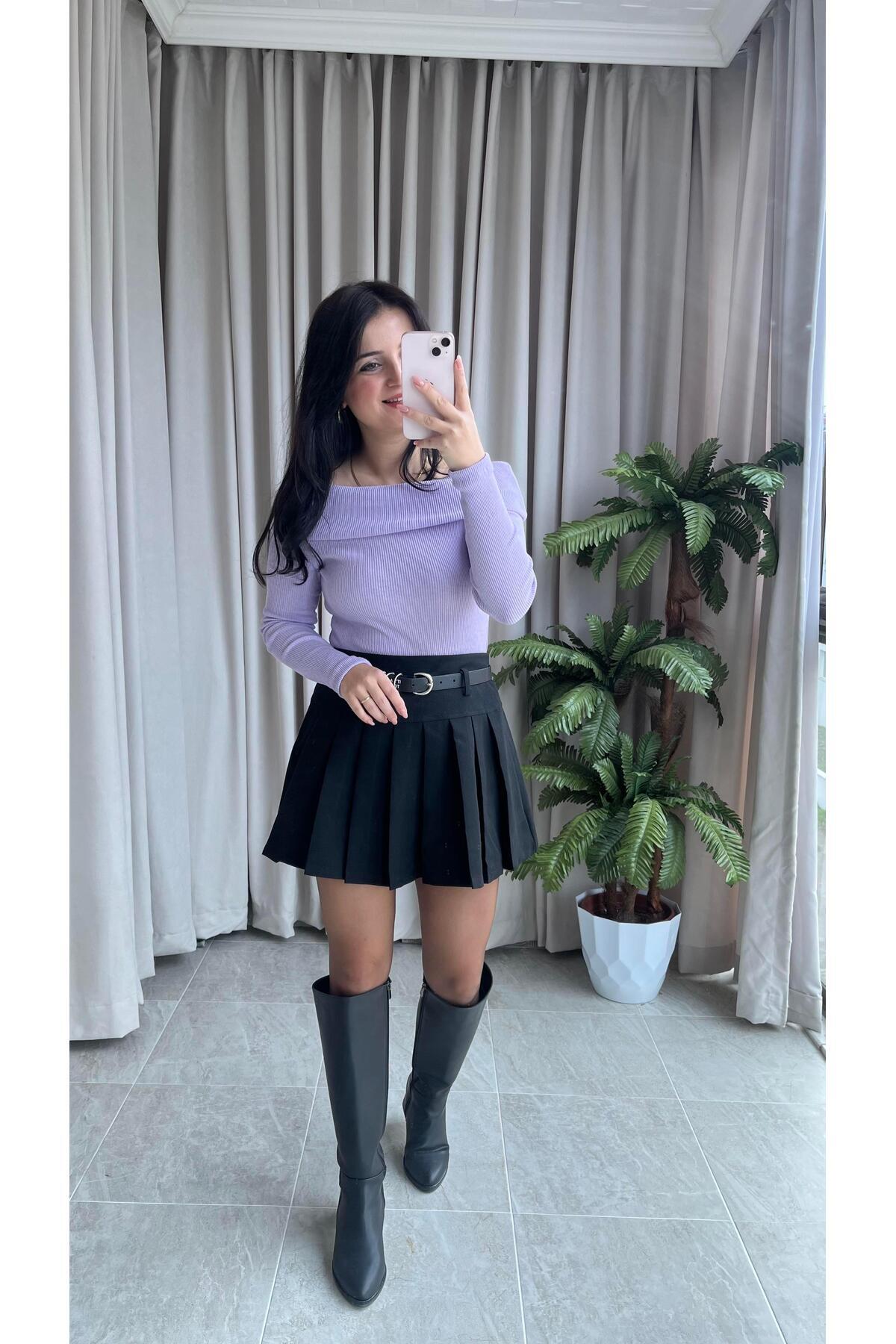 Kadın Lila Vatkalı Degaje Yaka Dökümlü Bluz BLZ-19002217 Kadın Lila Vatkalı Degaje Yaka Dökümlü Bluz BLZ-19002217 L