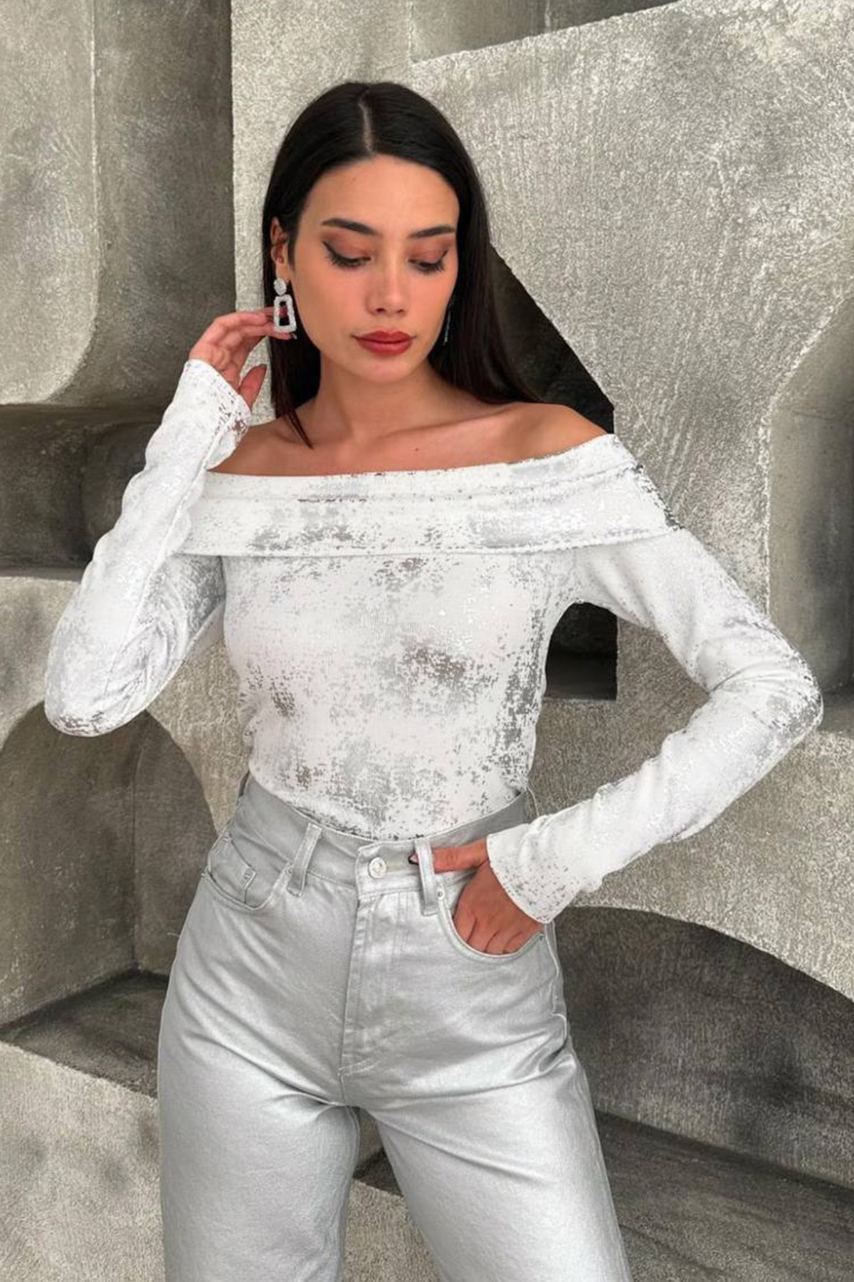 Kadın Beyaz Madonna Yaka Metalik Detaylı Bluz BLZ-19002457 Kadın Beyaz Madonna Yaka Metalik Detaylı Bluz BLZ-19002457 L