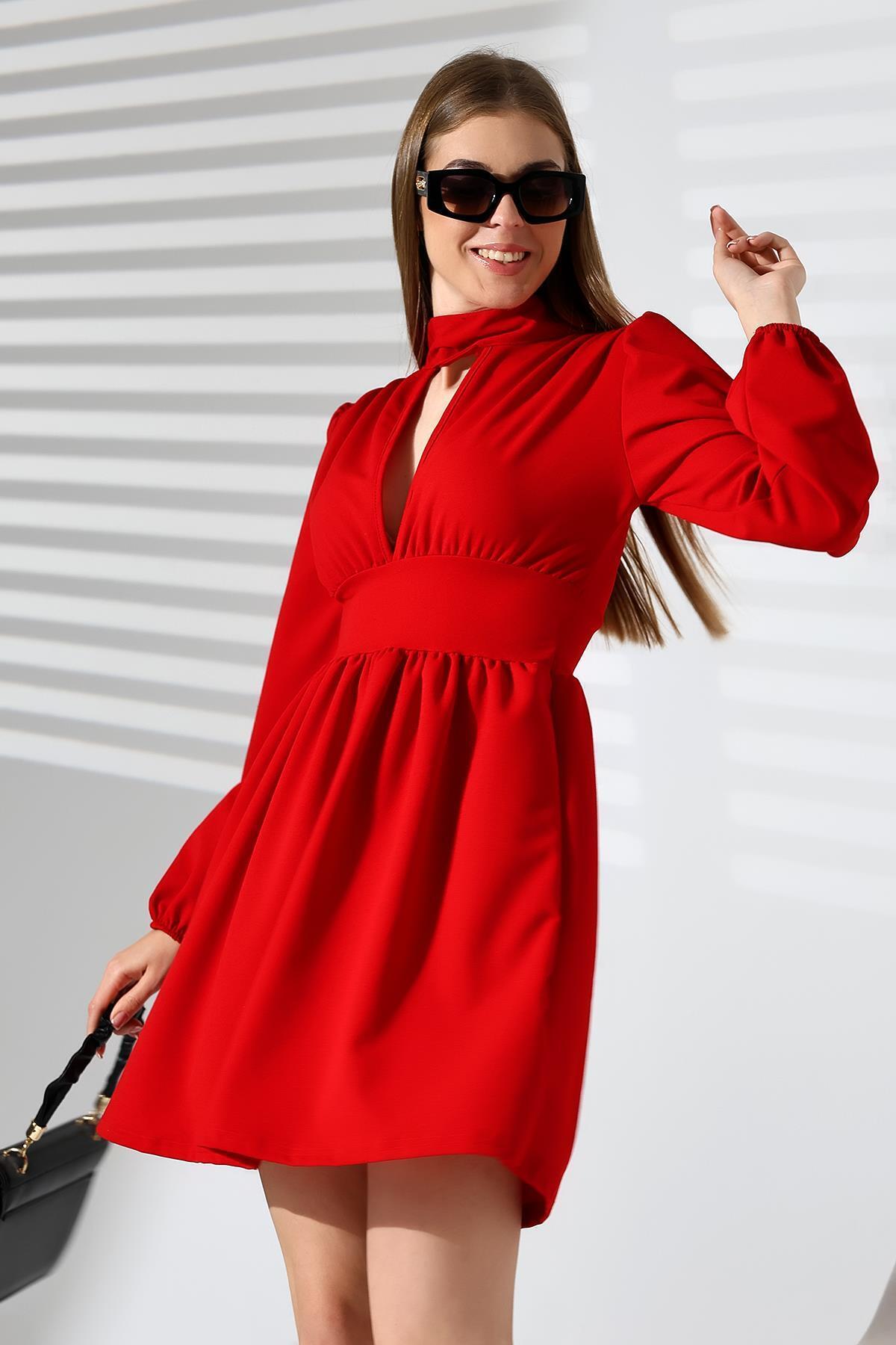 Pudra Zincir Detay Pencere Yaka İthal Krep Kumaş Uzun Kol Elbise Pudra Zincir Detay Pencere Yaka İthal Krep Kumaş Uzun Kol Elbise DFX582719 L