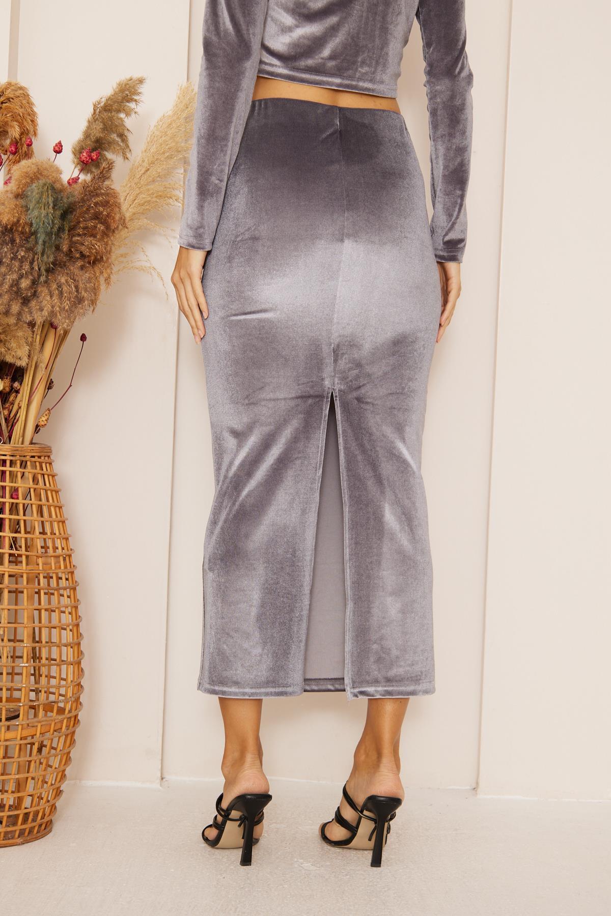 Kadın Antrasit Kadife Maxi Boy Etek Dm2026 Kadın Antrasit Kadife Maxi Boy Etek Dm2026 TYCBCM3LNN170385890202979 XL