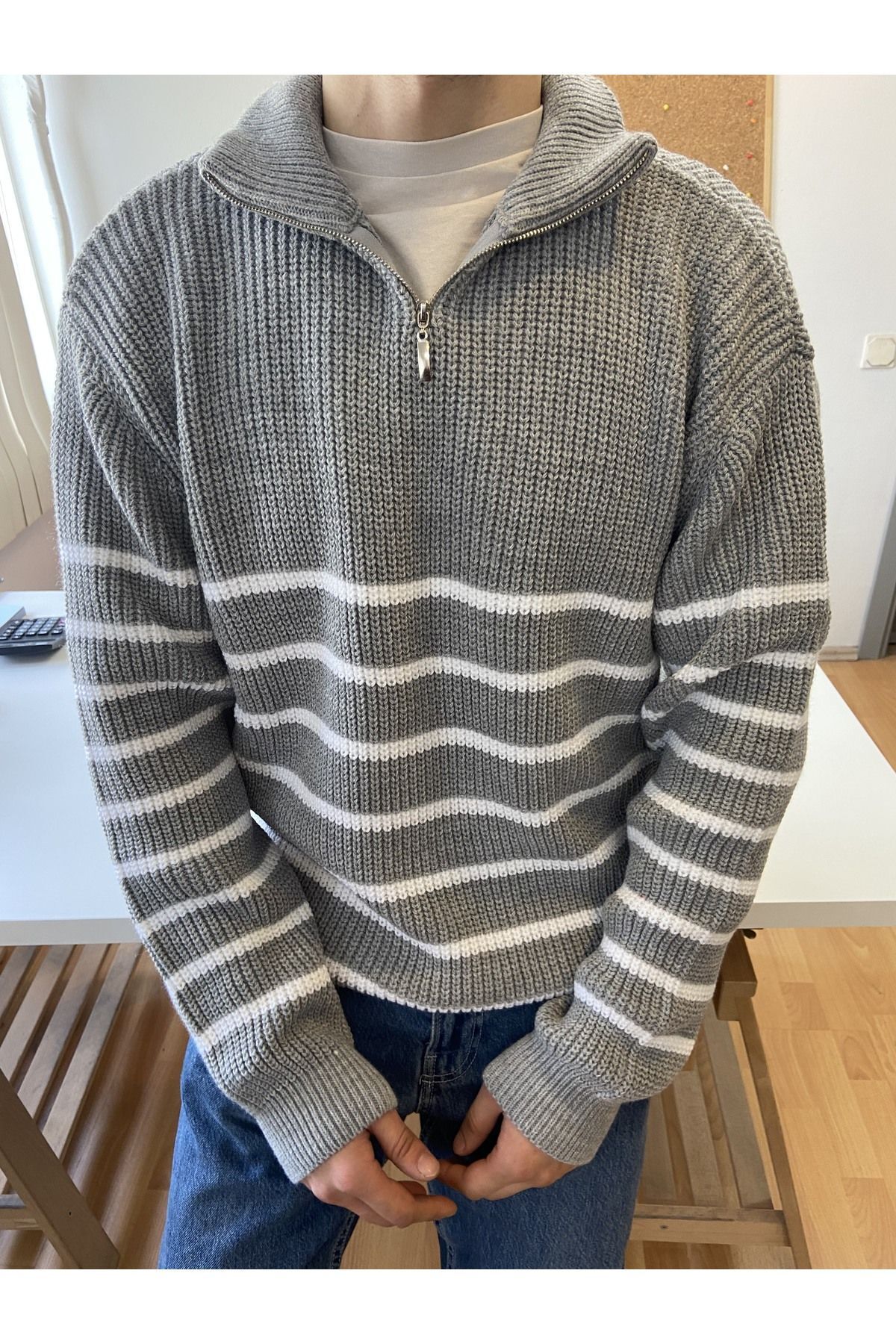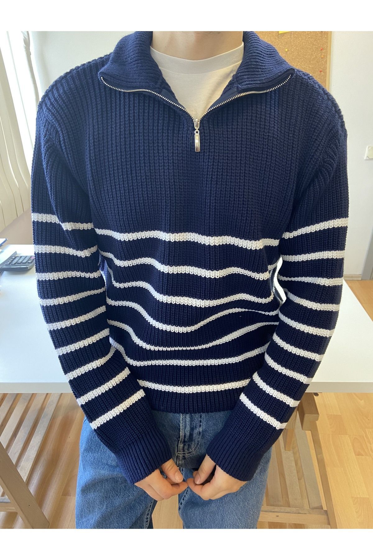 Beyaz-Siyah Erkek Regular Fermuarlı Balıkçı Triko Kazak Beyaz-Siyah Erkek Regular Fermuarlı Balıkçı Triko Kazak TRZ19182 XL