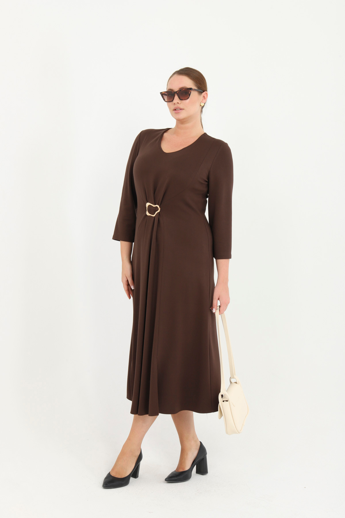 Tarçın Uzun Kol Düğmeli Beli Lastikli Kuşaklı Dokuma Dökümlü Kumaş Midi Boy Gömlek Elbise Tarçın Uzun Kol Düğmeli Beli Lastikli Kuşaklı Dokuma Dökümlü Kumaş Midi Boy Gömlek Elbise NO-001-MIDI 50