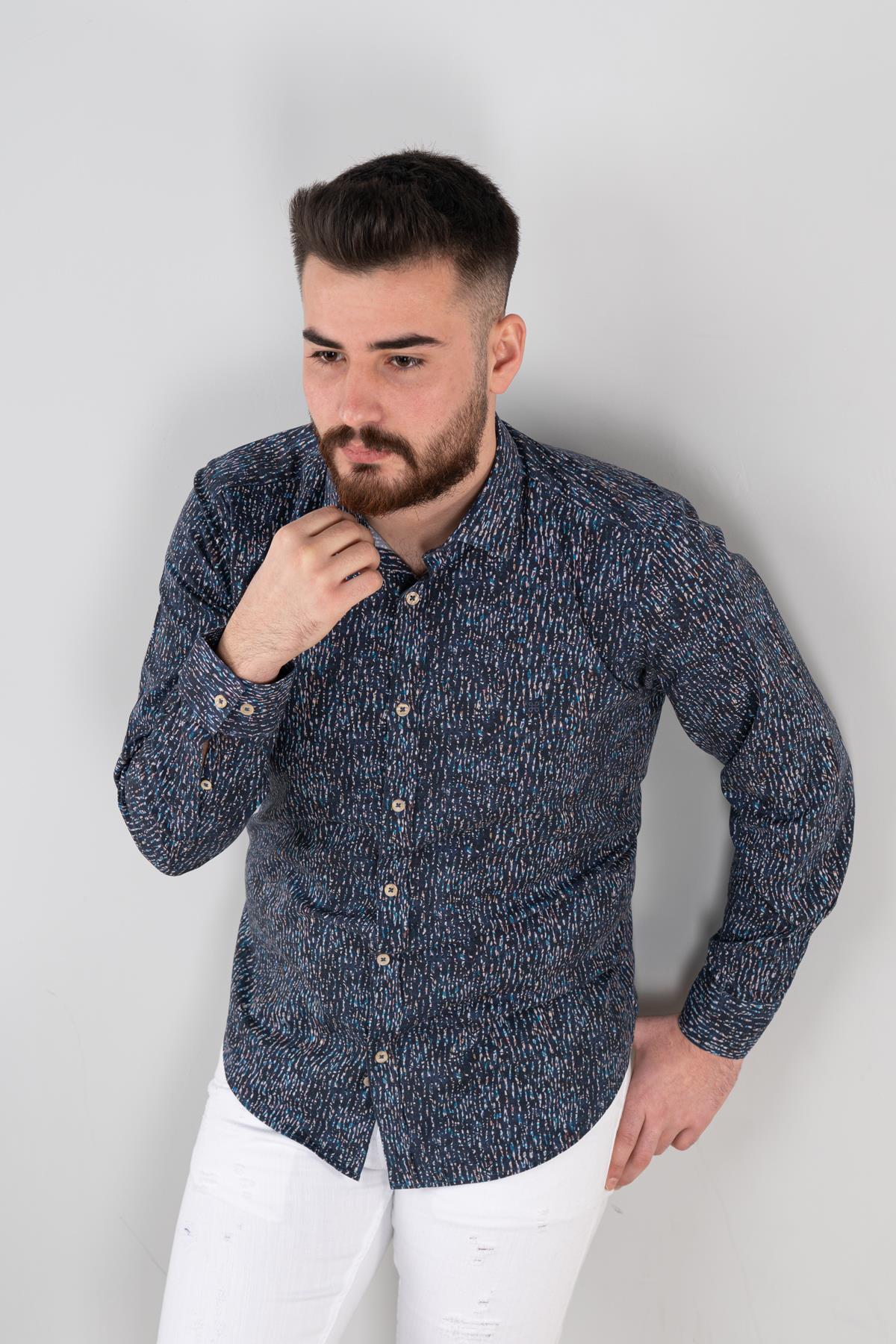 Uzun Kollu Slim Fit Pamuklu Mikro Desenli Lacivert Erkek Casual Gömlek Uzun Kollu Slim Fit Pamuklu Mikro Desenli Lacivert Erkek Casual Gömlek 05010302 M