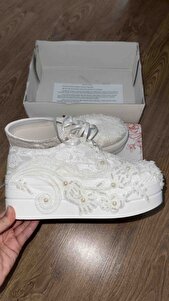 6cm Spor Gelin Ayakkabısı Dantel Incili 6cm Spor Gelin Ayakkabısı Dantel Incili 87655434565 41