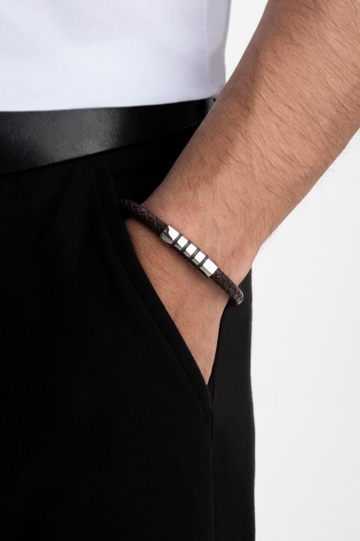Kahverengi Vegan Deri Çelik Erkek Bileklik Kahverengi Vegan Deri Çelik Erkek Bileklik 2834165434244 21 cm