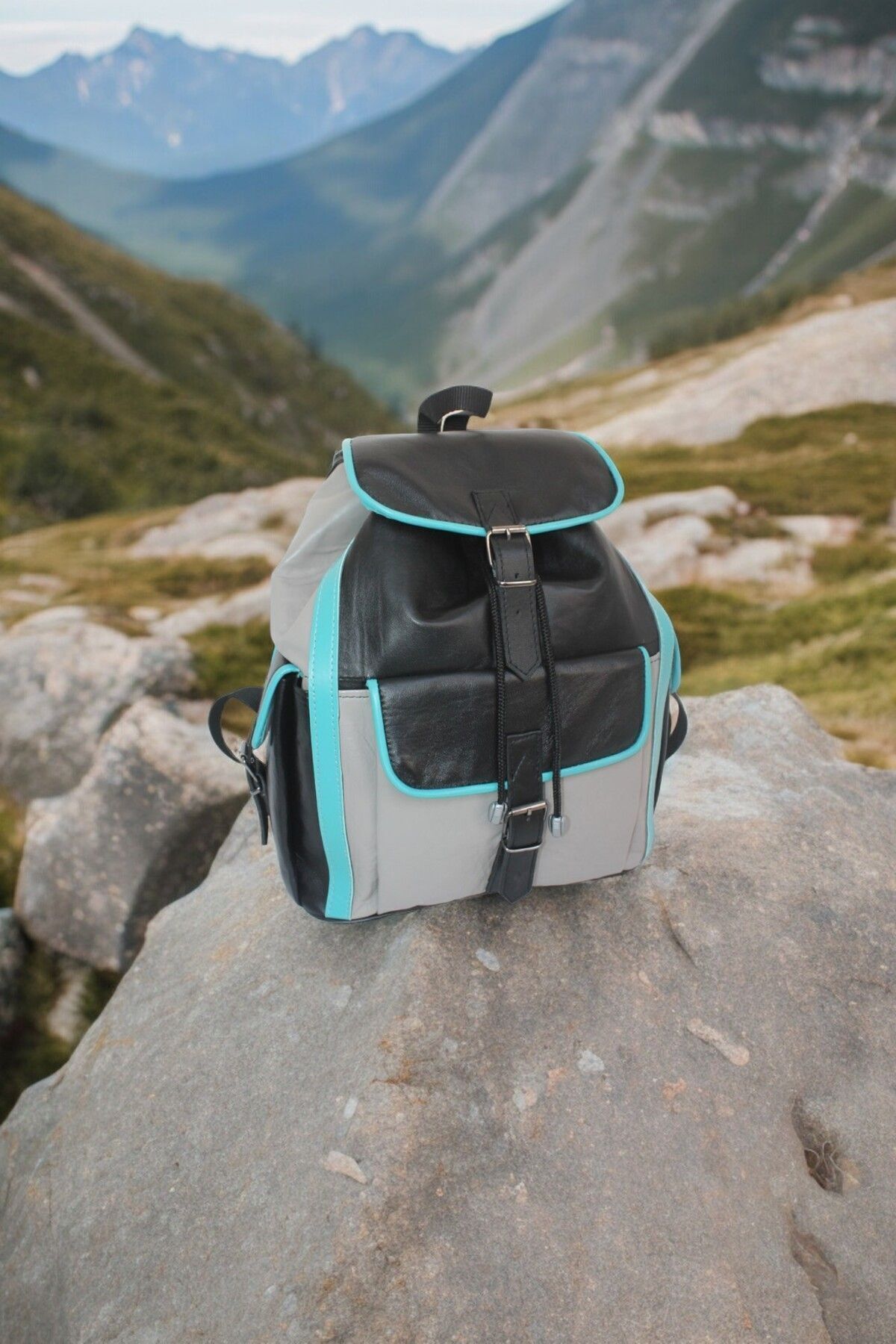Hakiki Deri Kadın Erkek Kullanımlı Sırt Çantası Siyah, Turkuaz, Gri Garnili 3 Cepli Model Hakiki Deri Kadın Erkek Kullanımlı Sırt Çantası Siyah, Turkuaz, Gri Garnili 3 Cepli Model TYC8ZWGAPN170107312650304 تک سایز