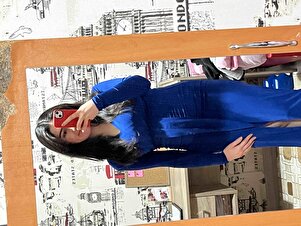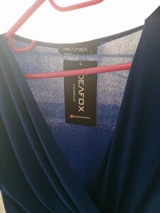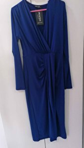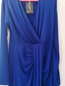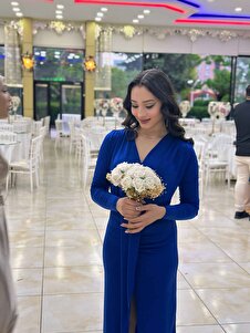 Saks Mavisi Kruvaze Yaka Uzun Kol Yırtmaç Detay Sandy Kumaş Elbise Saks Mavisi Kruvaze Yaka Uzun Kol Yırtmaç Detay Sandy Kumaş Elbise DFX582803 L