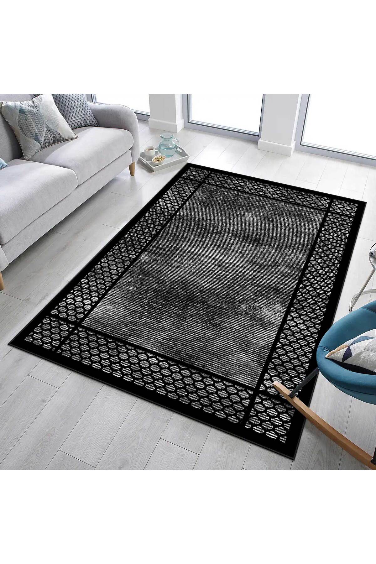 Dijital Baskılı Kaymaz Taban Yıkanabilir Sade Desen Yolluk Mutfak Salon Halısı, V-SADE-14-SİYAH, Dijital Baskılı Kaymaz Taban Yıkanabilir Sade Desen Yolluk Mutfak Salon Halısı, V-SADE-14-SİYAH, 160 x 230