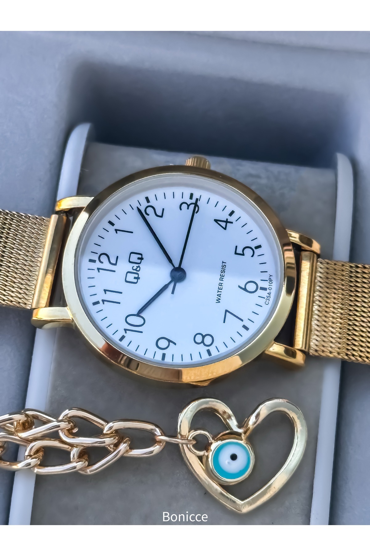 Çelik Hasır Kordon, Su Geçirmez, 2 Yıl Garantili Altın Renk Kadın Kol Saati Çelik Hasır Kordon, Su Geçirmez, 2 Yıl Garantili Altın Renk Kadın Kol Saati Q&QBNC3 تک سایز