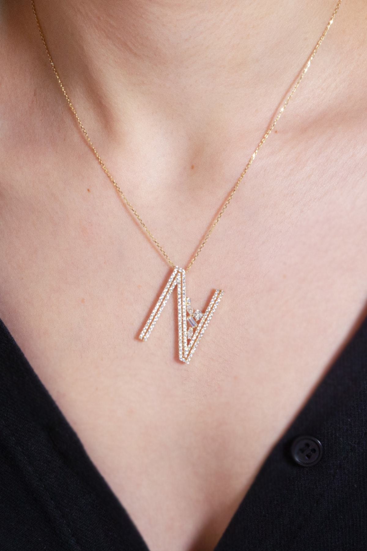 N Harfi Taşsız Minimal Harf Kolye 14 Ayar Altın N Harfi Taşsız Minimal Harf Kolye 14 Ayar Altın ST_P308528 45 cm