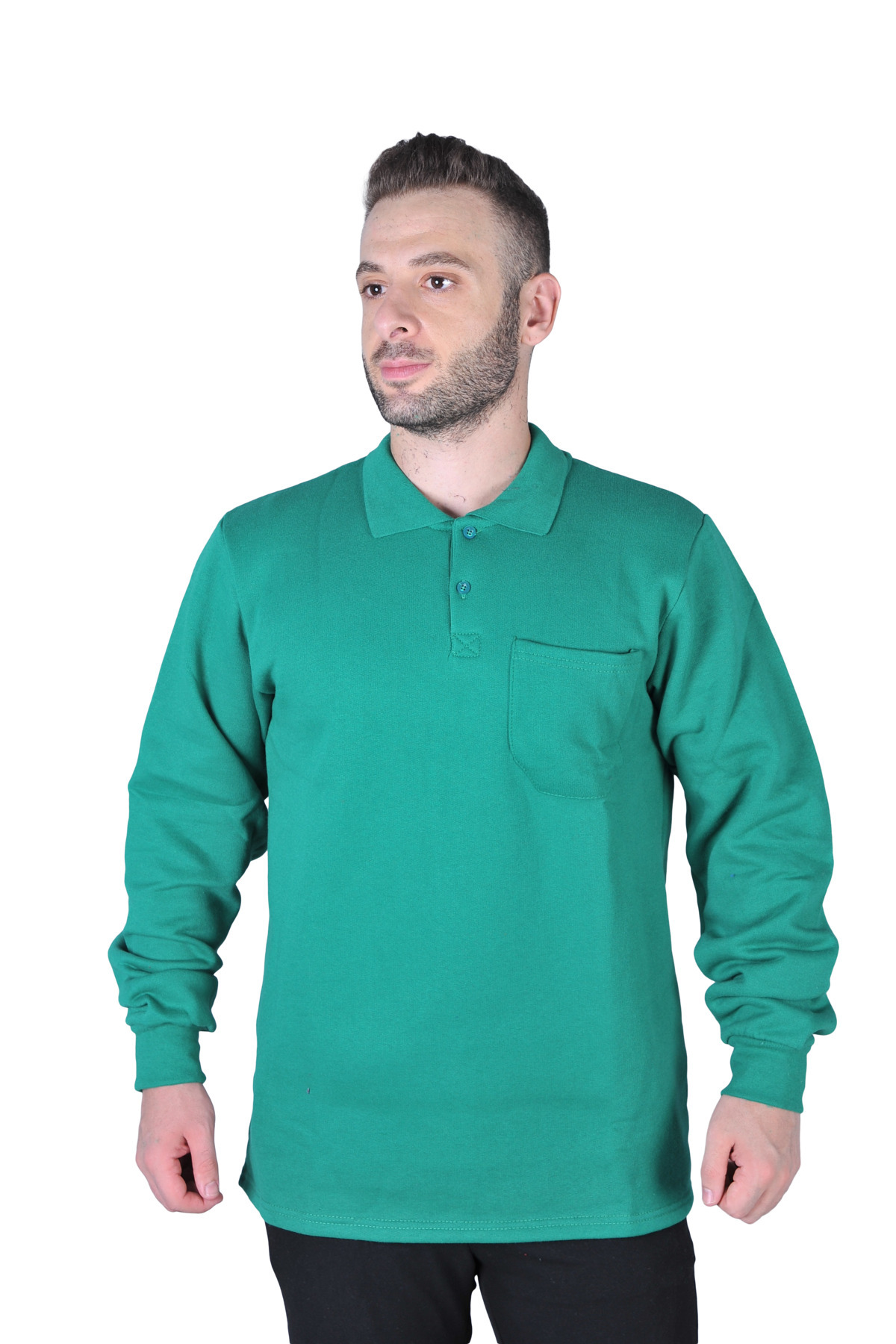 İki Iplik Polo Yaka Cepli Sweatshirt İki Iplik Polo Yaka Cepli Sweatshirt T 3500 4XL