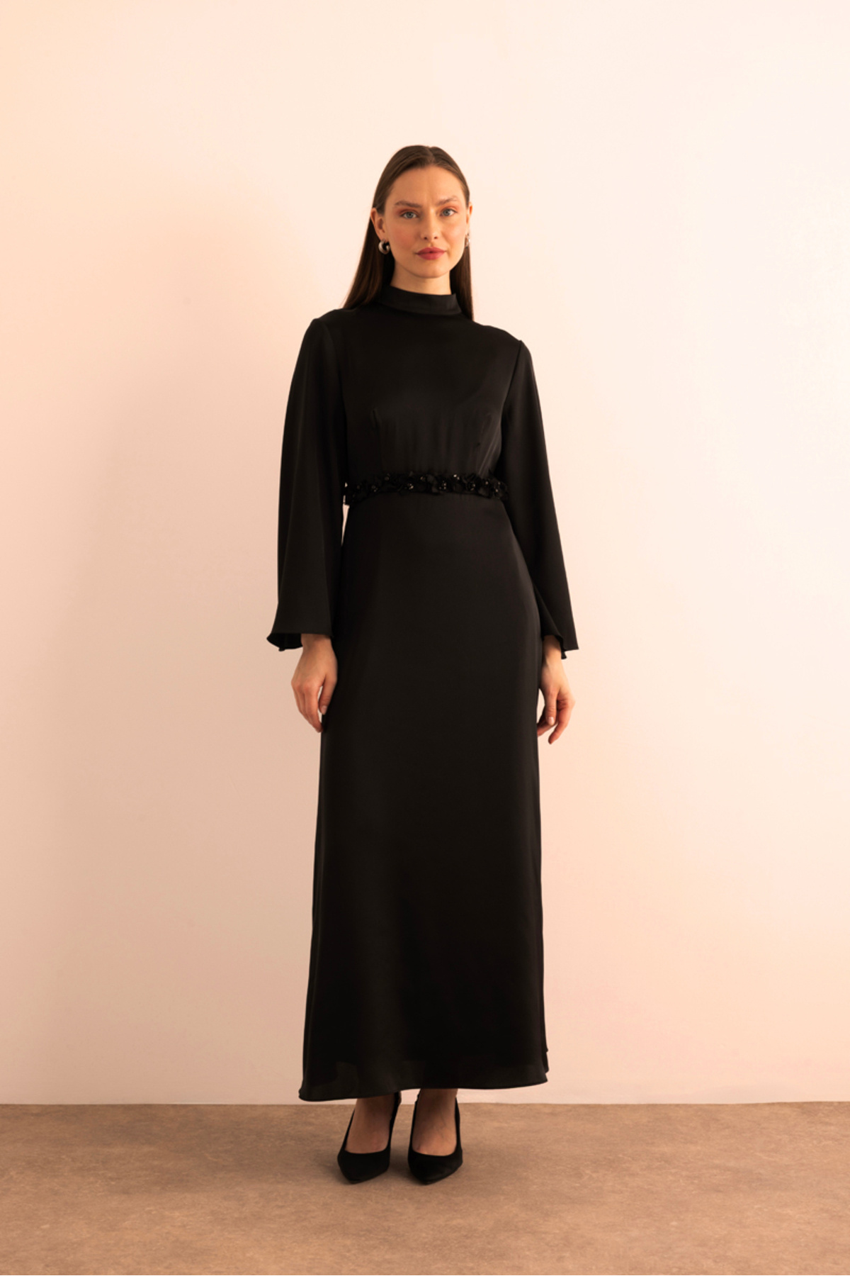 Belden Bağlama Detaylı Saten Tesettür Abiye Belden Bağlama Detaylı Saten Tesettür Abiye 5948 46