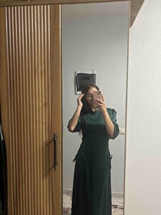 Belden Bağlama Detaylı Saten Tesettür Zümrüt Abiye Belden Bağlama Detaylı Saten Tesettür Zümrüt Abiye 5948 44