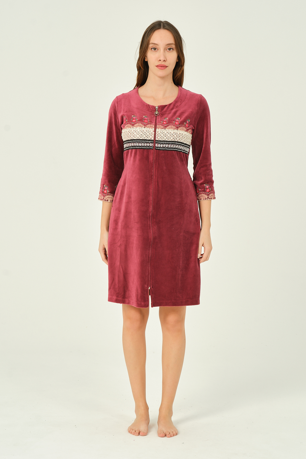kadın fermuarlı çizgi desenli pamuklu kadife elbise kadın fermuarlı çizgi desenli pamuklu kadife elbise 24032 2XL