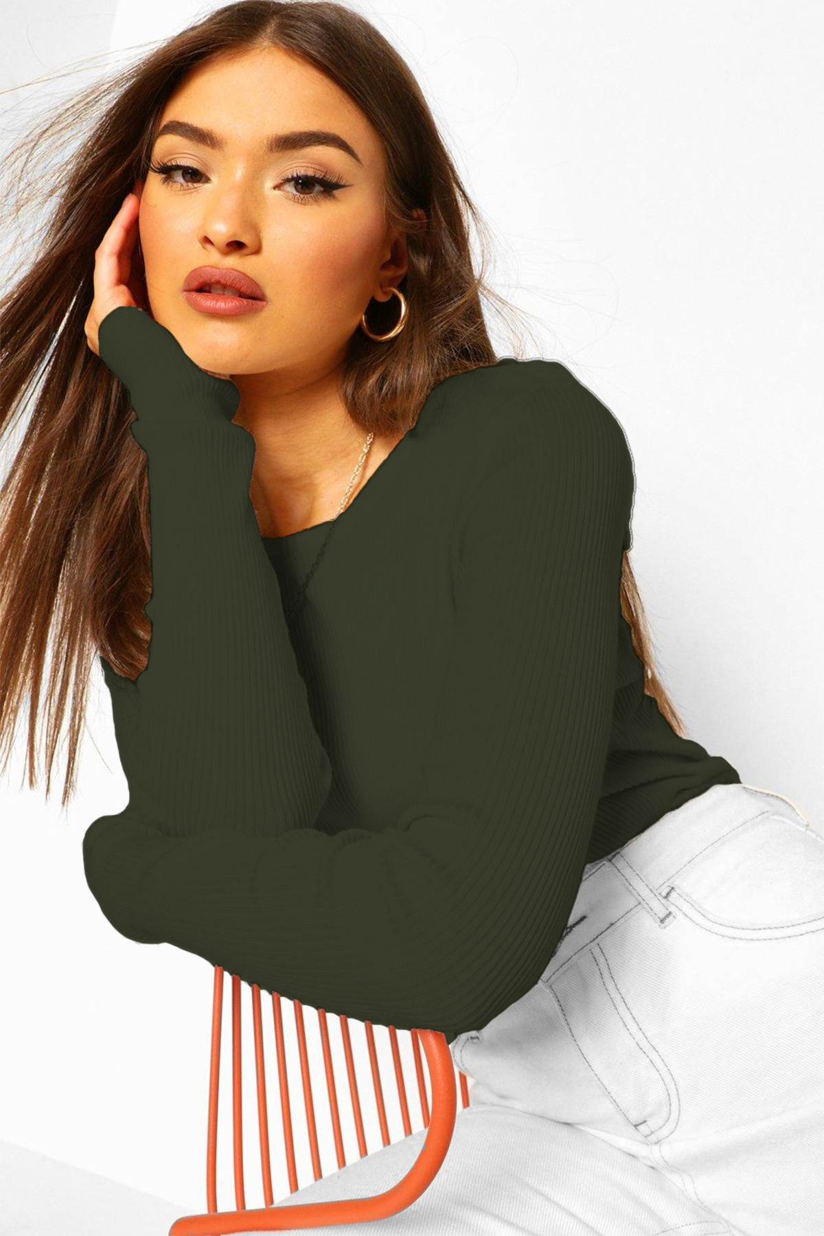Kadın Haki Uzun Kollu Bisiklet Yaka T-shirt Bluz Kaşkorse Fitilli Kadın Haki Uzun Kollu Bisiklet Yaka T-shirt Bluz Kaşkorse Fitilli GL SW 002 L