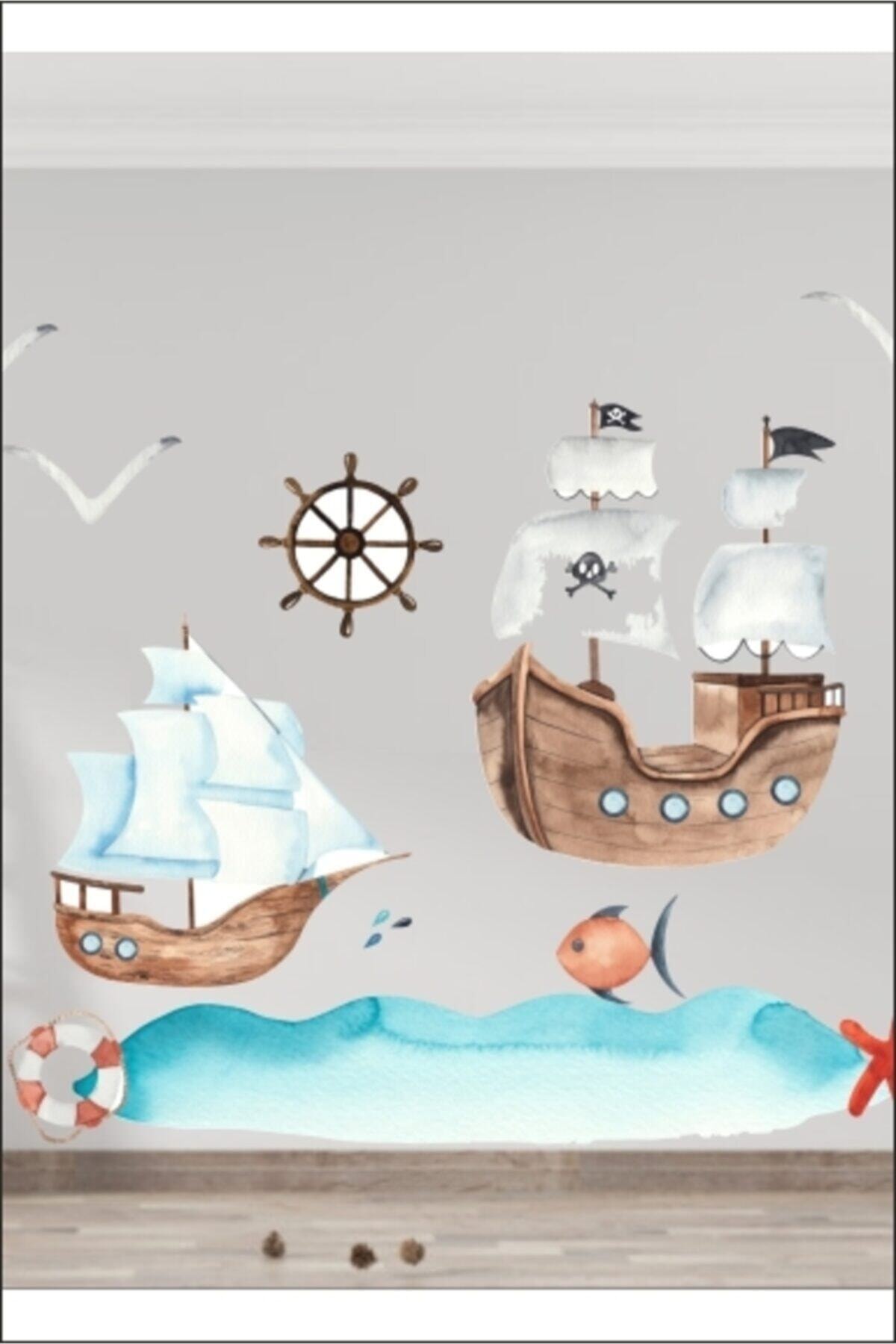 Pastel Renklerde Denizci Set Gemi Ve Balinalar Çocuk Odası Duvar Sticker Seti Pastel Renklerde Denizci Set Gemi Ve Balinalar Çocuk Odası Duvar Sticker Seti SSTCKREKSP938 100 x 60