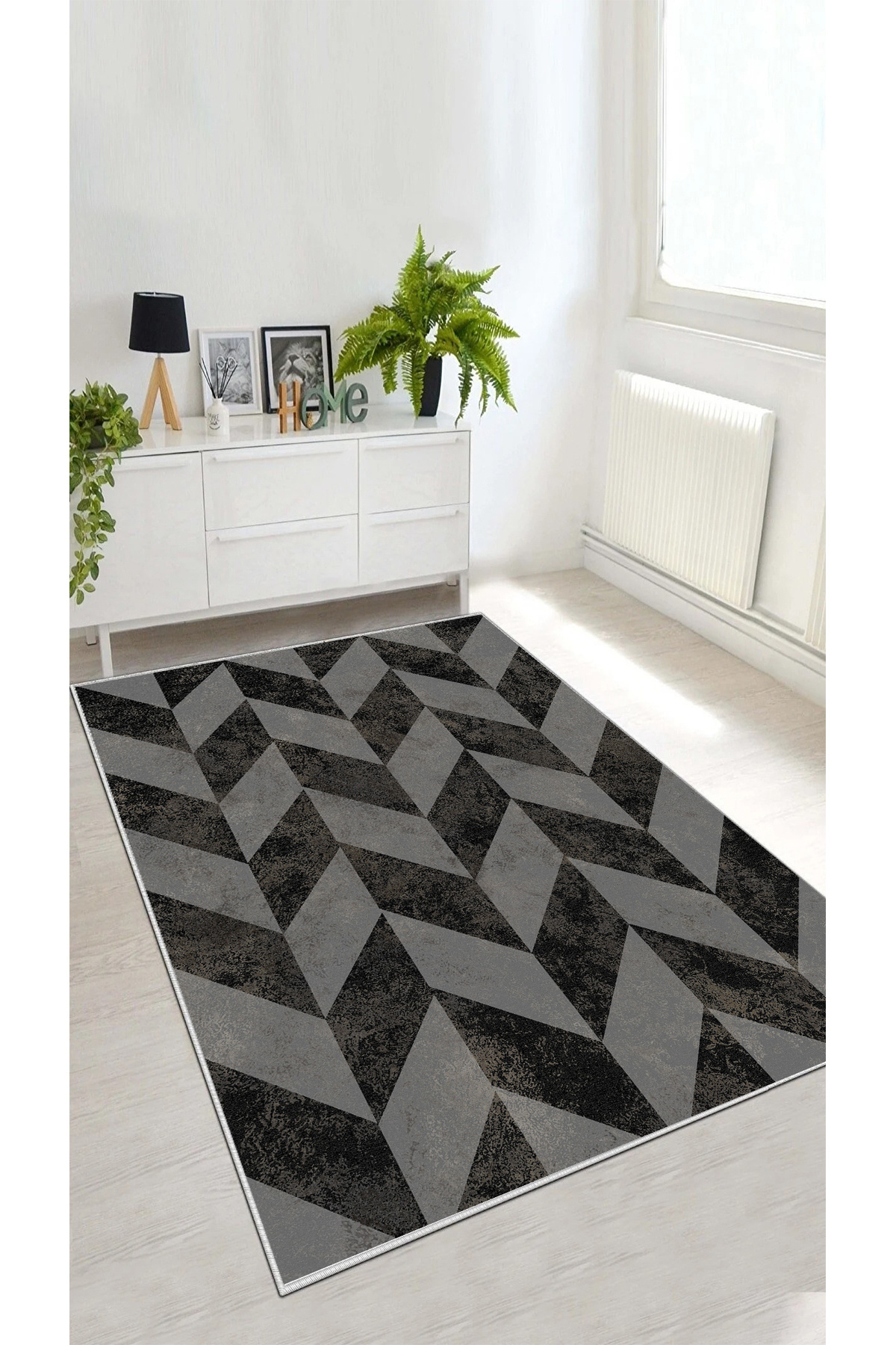 Dijital Baskılı Kaymaz Taban Yıkanabilir Modern Yolluk Mutfak Salon Halısı, V-MODERN-35-ANTRASİT, Dijital Baskılı Kaymaz Taban Yıkanabilir Modern Yolluk Mutfak Salon Halısı, V-MODERN-35-ANTRASİT, 160 x 230
