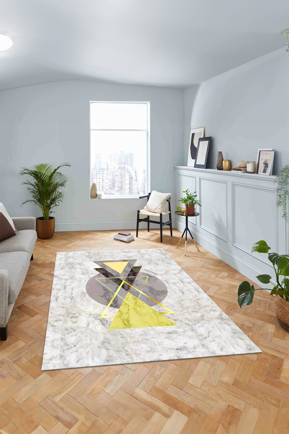Dijital Baskılı Kaymaz Taban Yıkanabilir Oval Modern Yolluk Salon Halısı, V-O-MODERN-33-SARI, Dijital Baskılı Kaymaz Taban Yıkanabilir Oval Modern Yolluk Salon Halısı, V-O-MODERN-33-SARI, V-MODERN-33 160 x 230