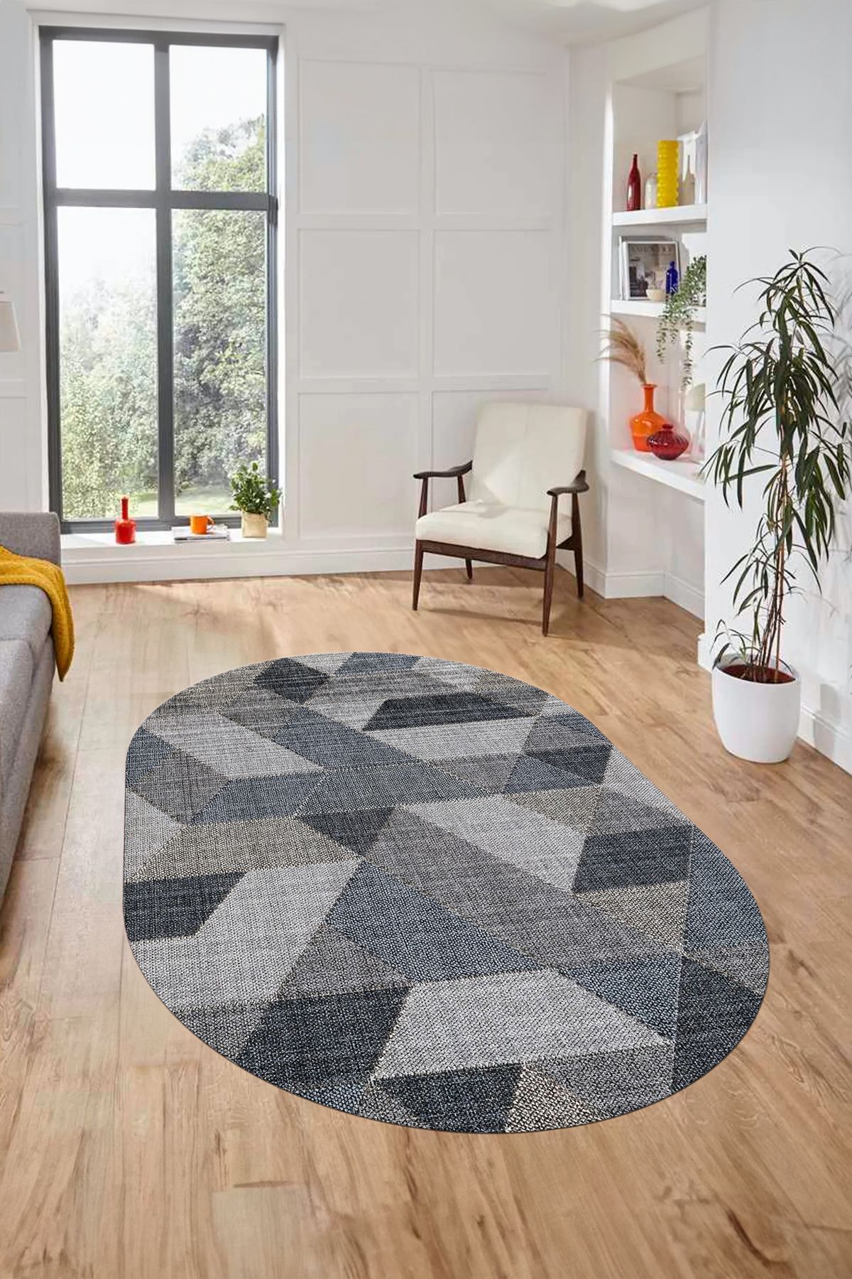 Dijital Baskılı Kaymaz Taban Yıkanabilir Oval Modern Yolluk Salon Halısı, V-O-MODERN-24-ANTRASİT, Dijital Baskılı Kaymaz Taban Yıkanabilir Oval Modern Yolluk Salon Halısı, V-O-MODERN-24-ANTRASİT, V-MODERN-24 160 x 230