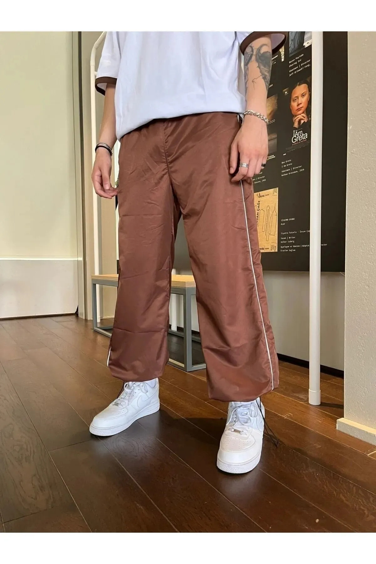 Bol Kalıp Lastikli Çizgi Detay Paraşüt Unisex Pantolon Bol Kalıp Lastikli Çizgi Detay Paraşüt Unisex Pantolon lastikliçizgidetay08 L