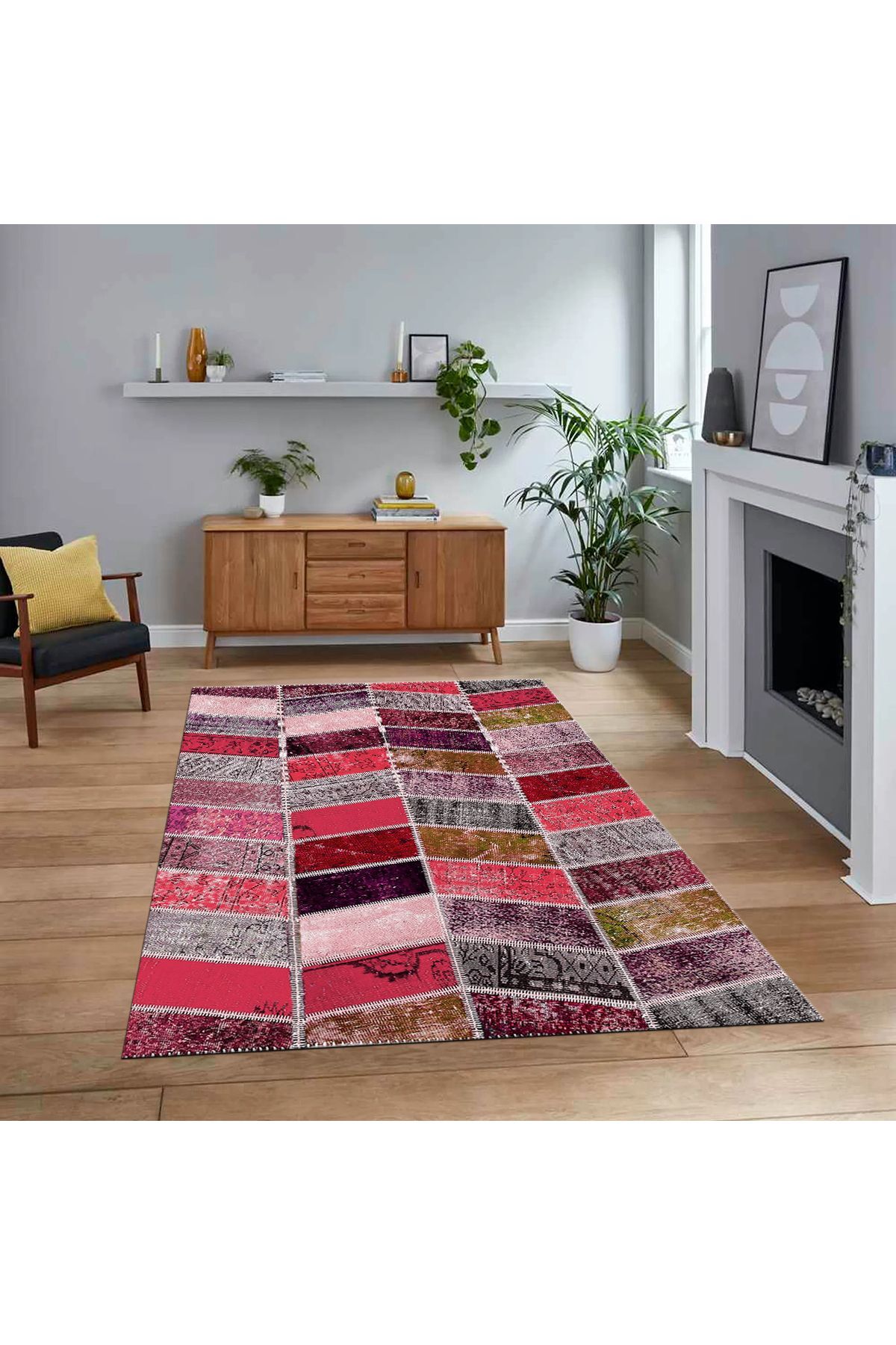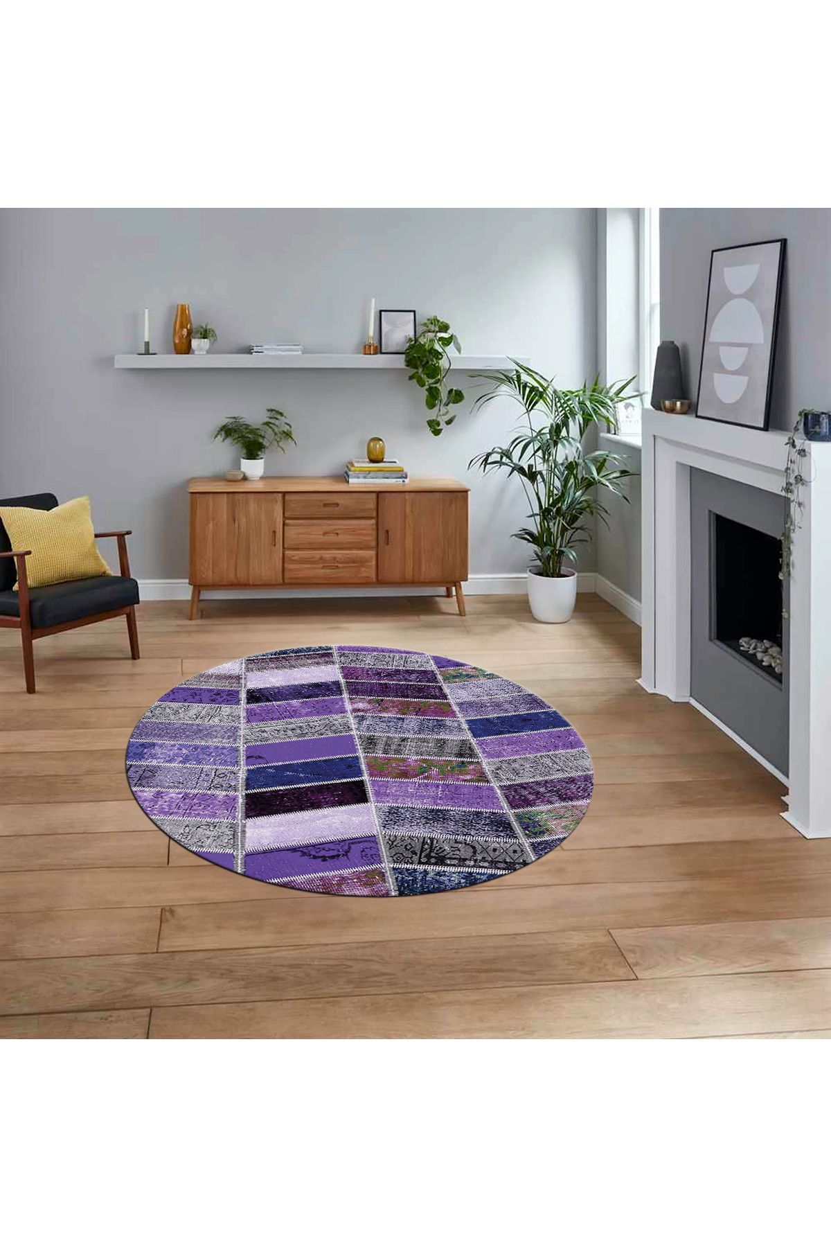 Dijital Baskılı Kaymaz Taban Yıkanabilir Patchwork Yolluk Salon Halısı, V-PATCHWORK-10-MOR, Dijital Baskılı Kaymaz Taban Yıkanabilir Patchwork Yolluk Salon Halısı, V-PATCHWORK-10-MOR, 160 x 230