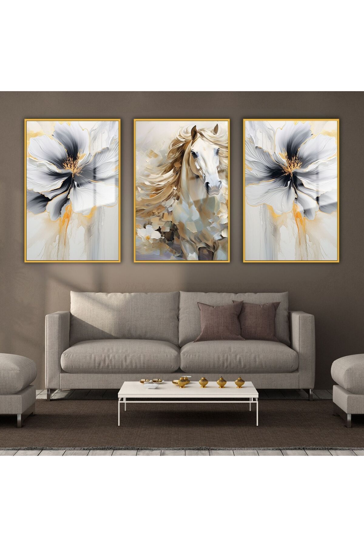 3'lü Metal Çerçeveli Cam Tablo Seti Menekşe ve Beyaz At 3'lü Metal Çerçeveli Cam Tablo Seti Menekşe ve Beyaz At GAAGART-3CC-0034 70 x 100