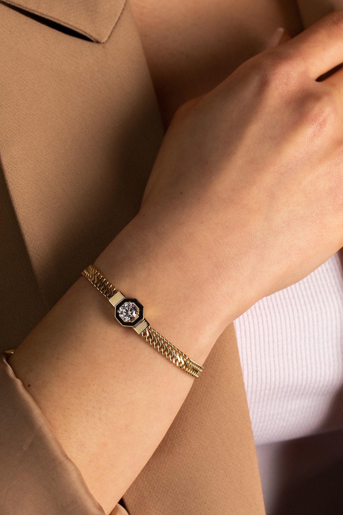 14 Ayar Altın Çift Mineli Kalp Bileklik 14 Ayar Altın Çift Mineli Kalp Bileklik YKKLY00000931 19 cm
