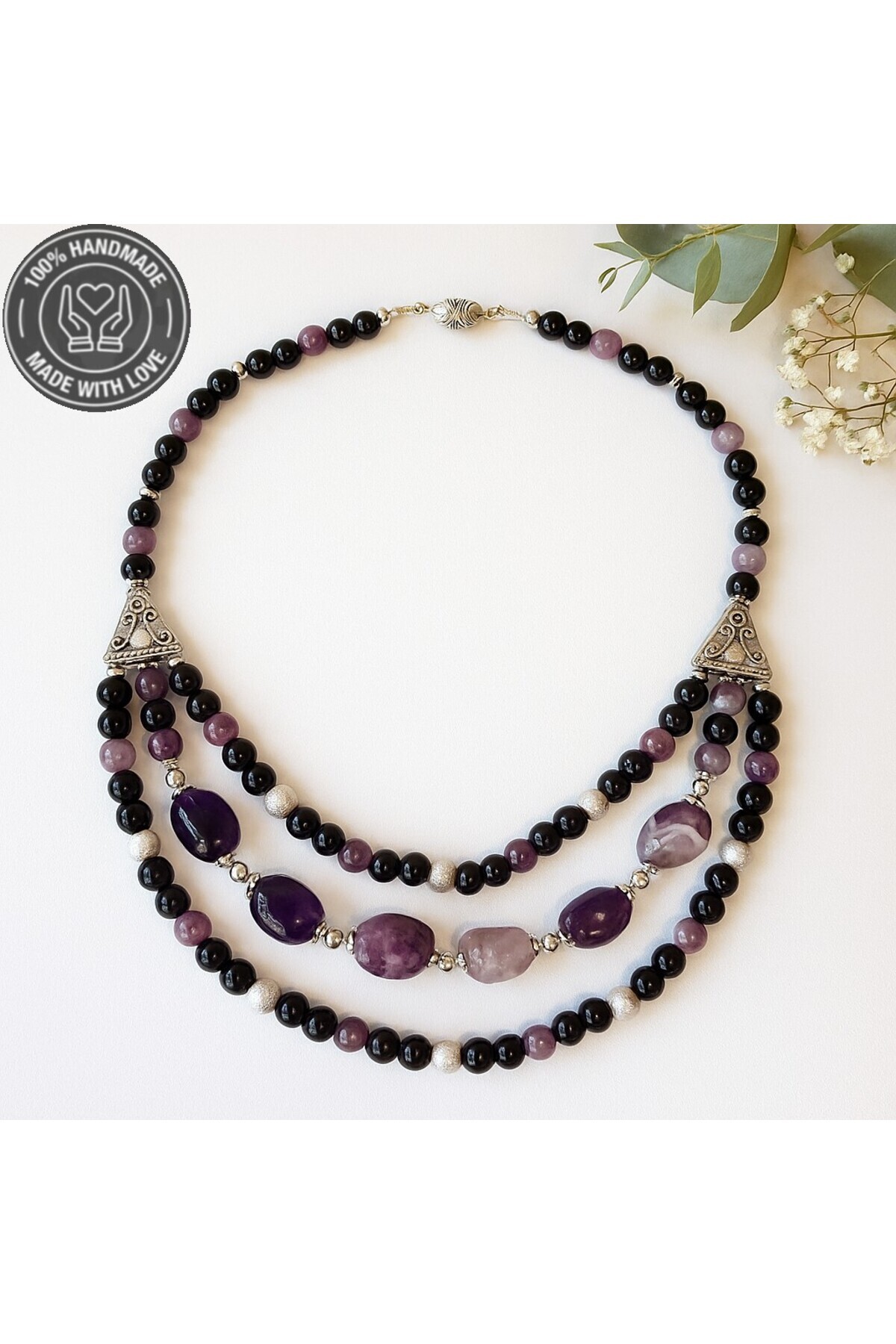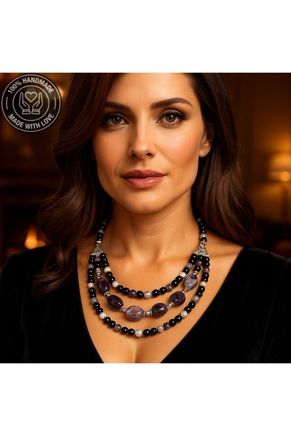 Ametist Oniks 3 Sıralı Özel Tasarım Depresyon Azaltma Ve Nazar Koruması Kolyesi Ametist Oniks 3 Sıralı Özel Tasarım Depresyon Azaltma Ve Nazar Koruması Kolyesi 210 تک سایز