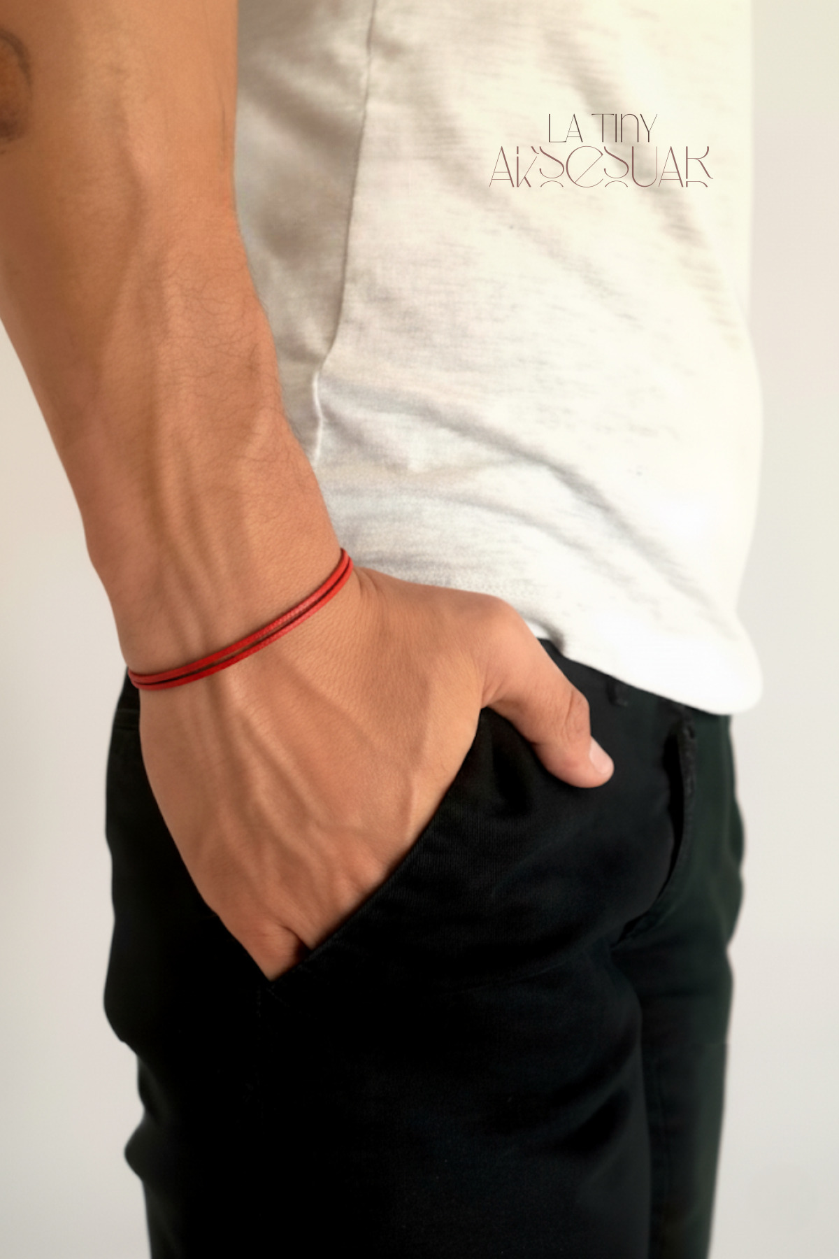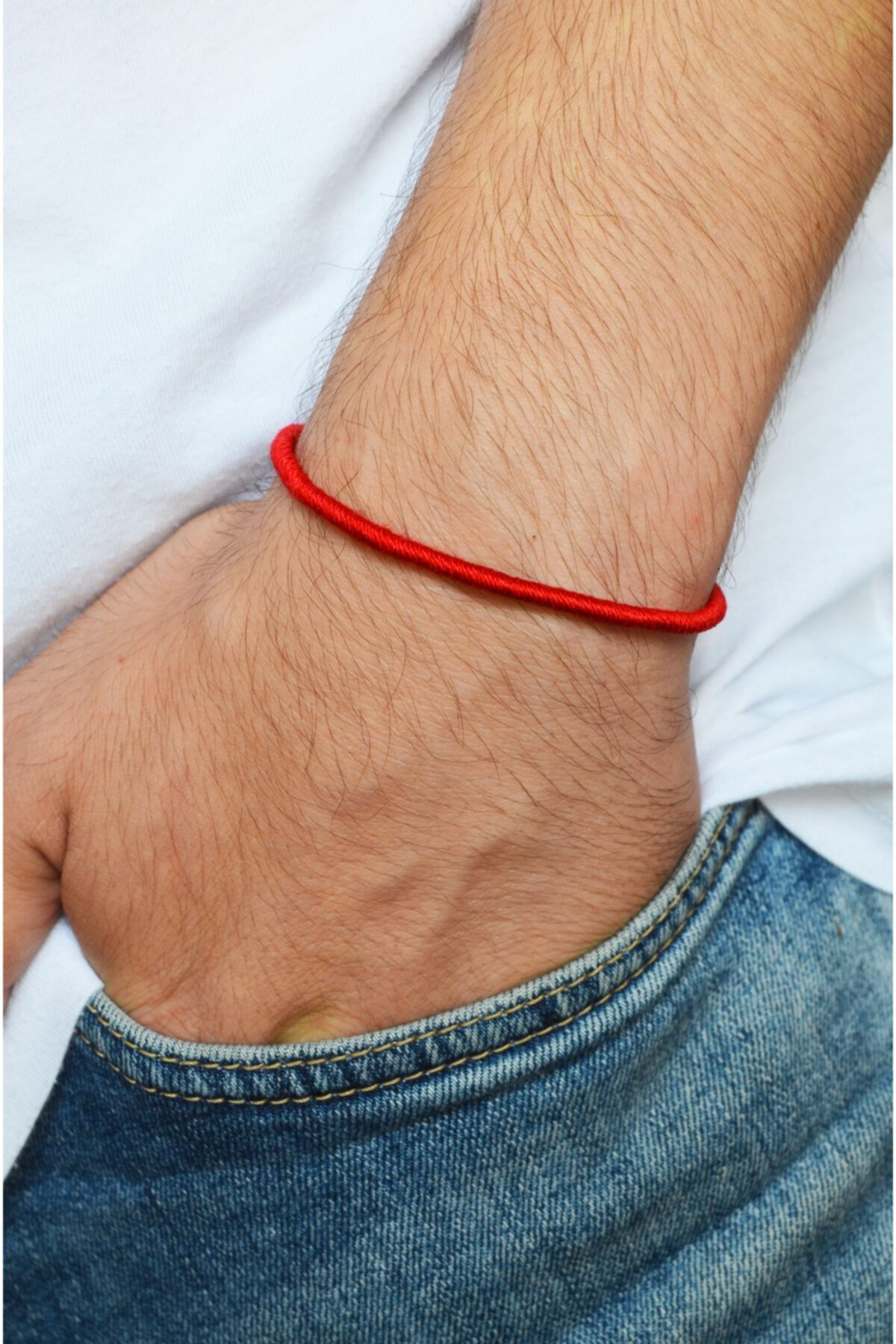 Gold Küp Aksesuarlı Kırmızı İp Erkek Bileklik Gold Küp Aksesuarlı Kırmızı İp Erkek Bileklik 0174 L