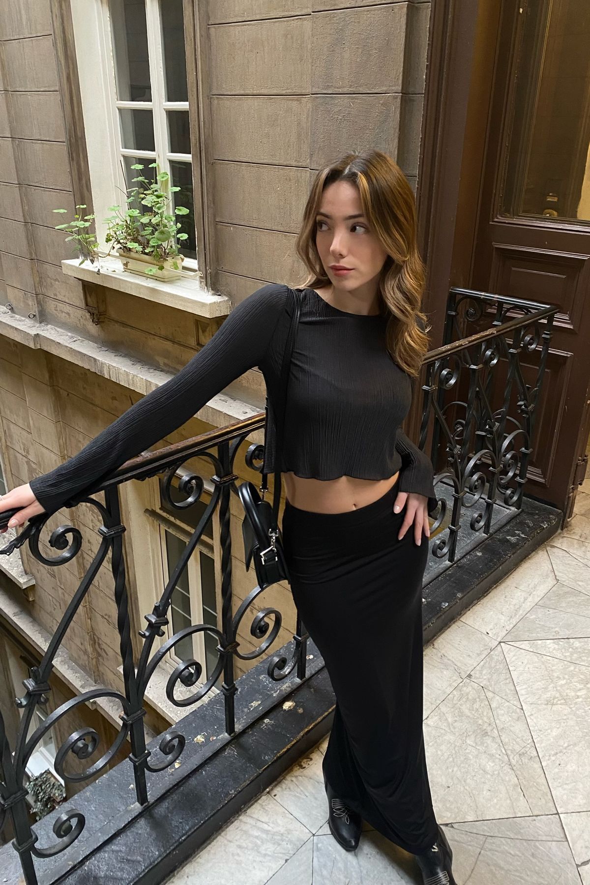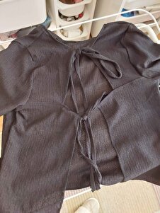 Siyah Piliseli Sırtı Açık Bluz Siyah Piliseli Sırtı Açık Bluz LAPİLİSELİ L